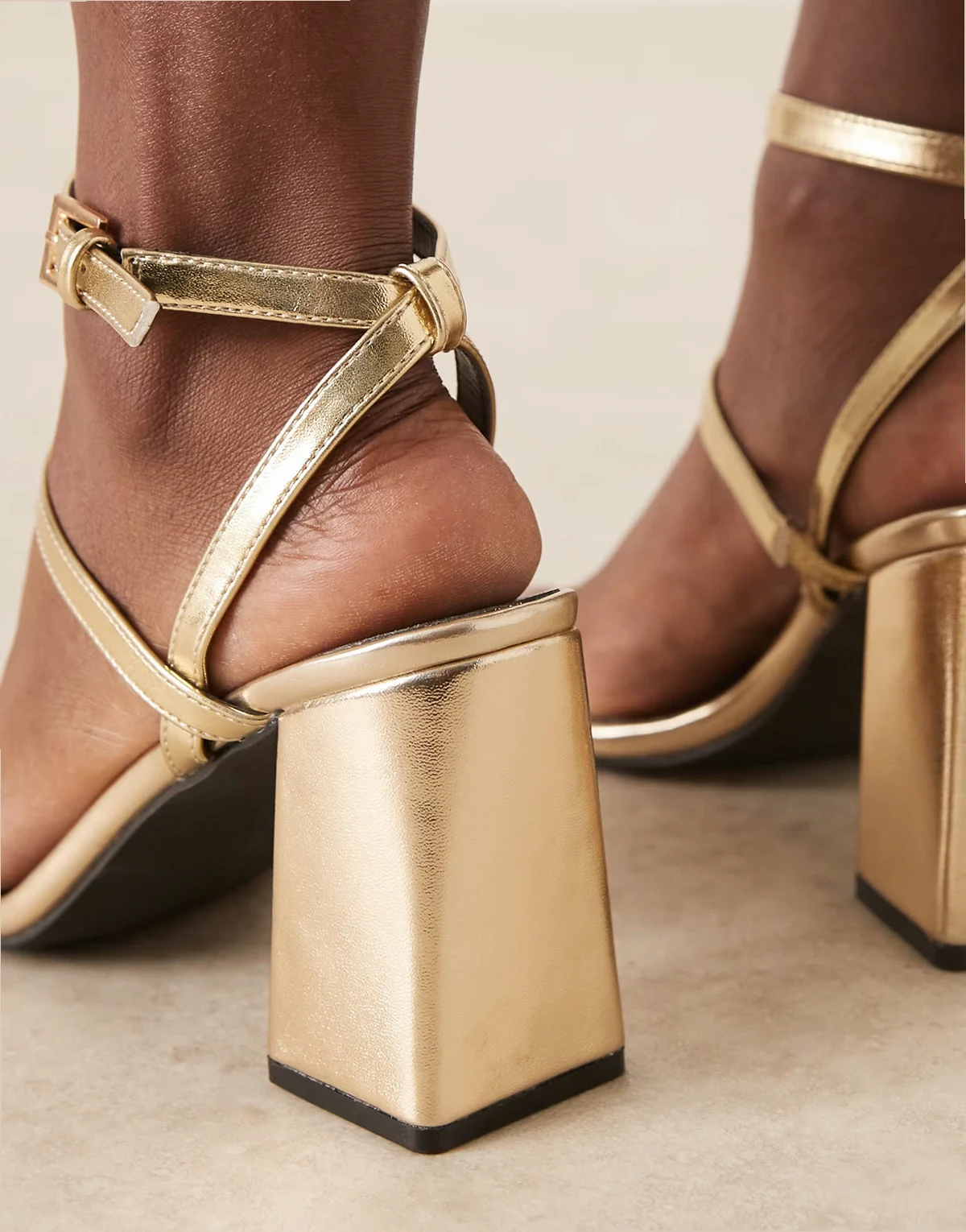 4. – Jeeya – Sandaletten in Gold mit Blockabsatz