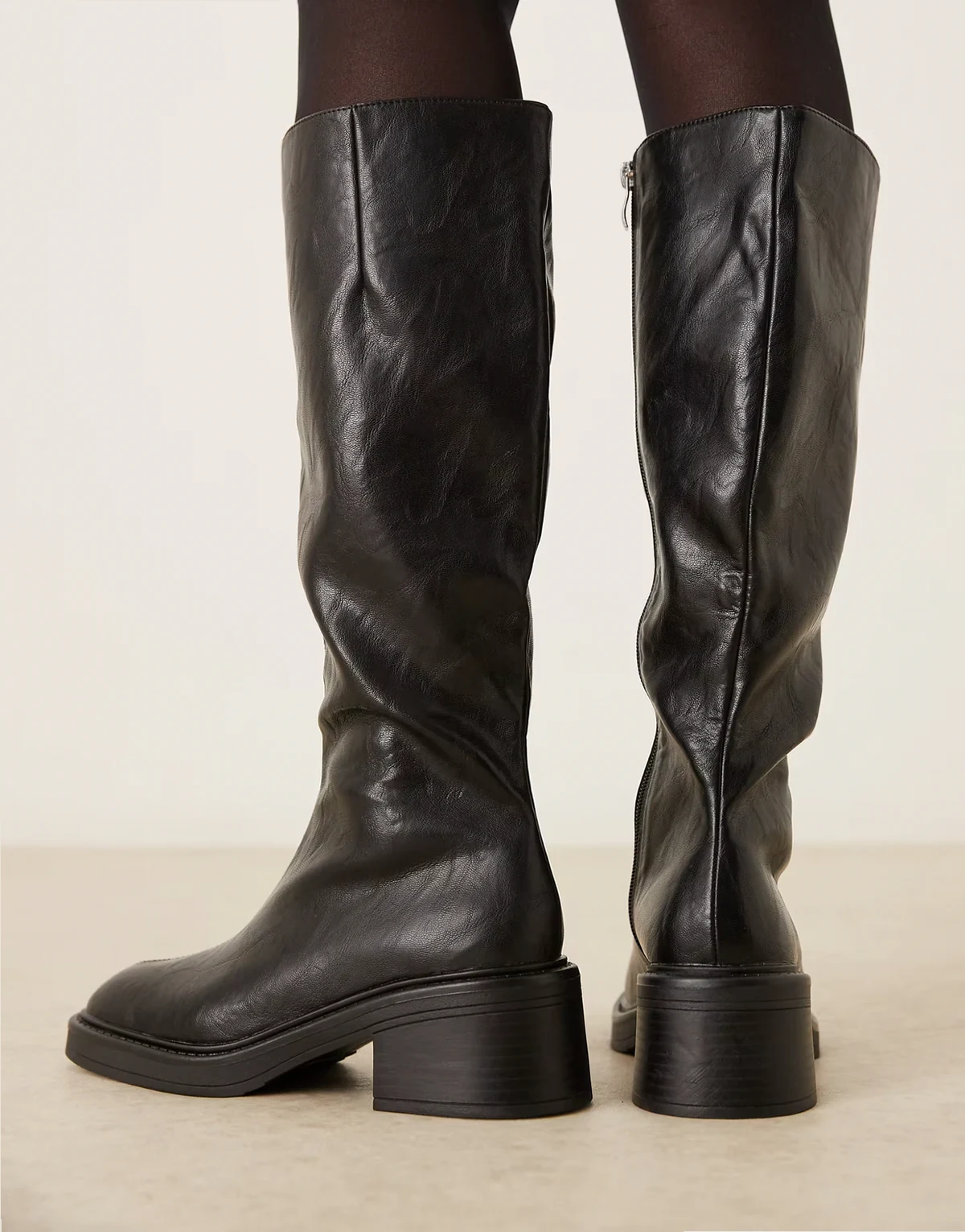 – Samba – Kniehohe Stiefel in Schwarz mit eckiger Zehenpartie