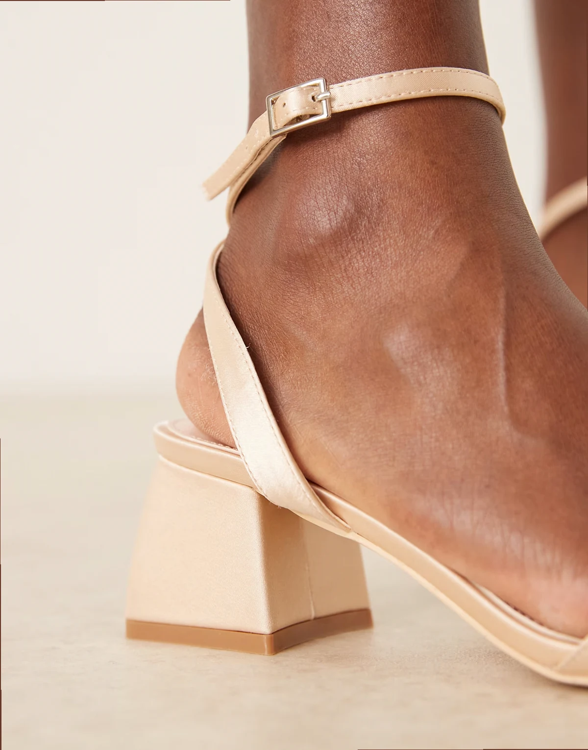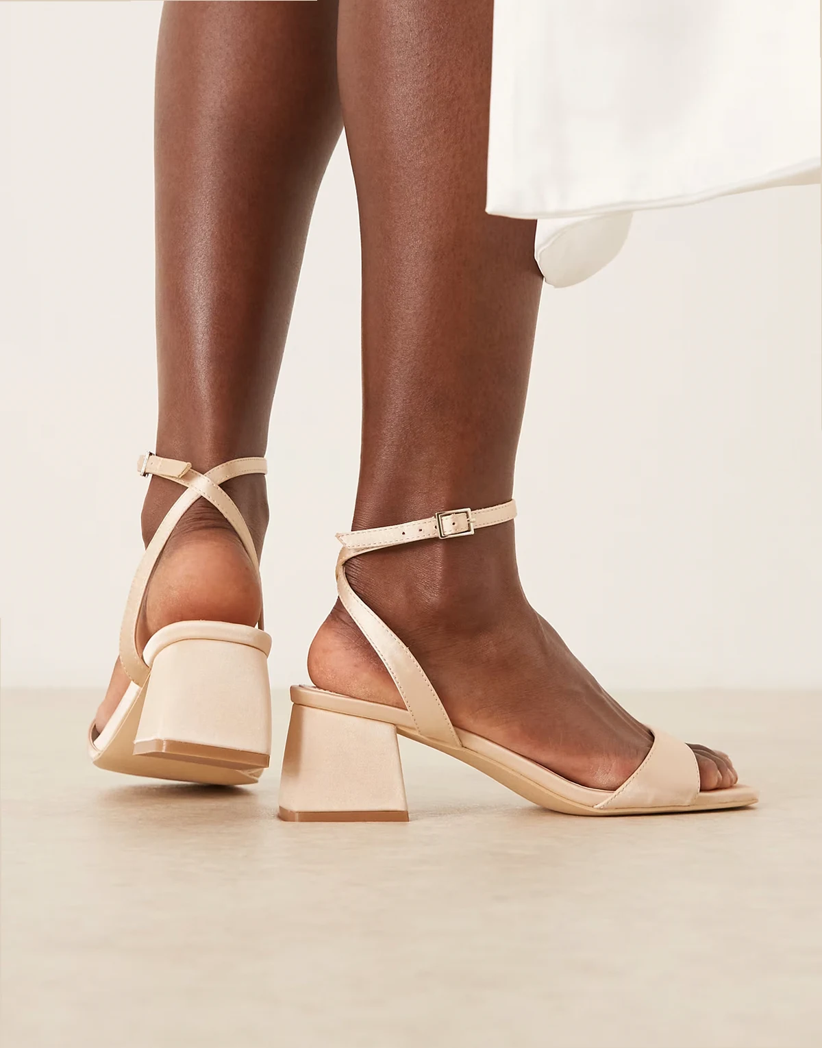 4. – Bridal Ammie – Sandalen aus Satin in Rosé mit niedrigem Blockabsatz, weite Passform