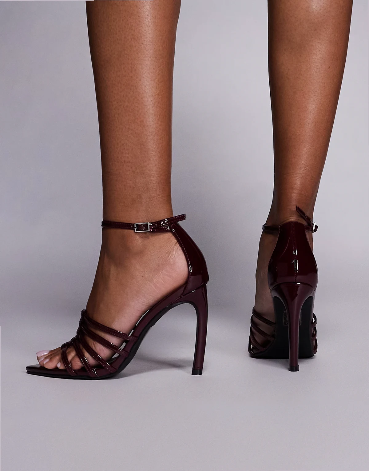 4. – Corset – Sandaletten in burgunderroter Lackoptik mit Absatz