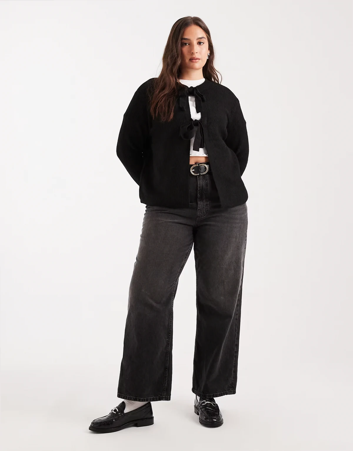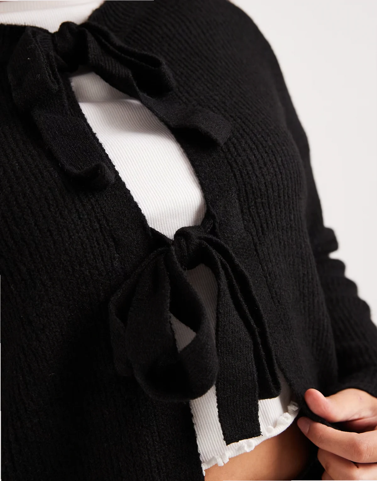 Pieces Curve – Wendbare Strickjacke in Schwarz mit gebundener Vorderseite