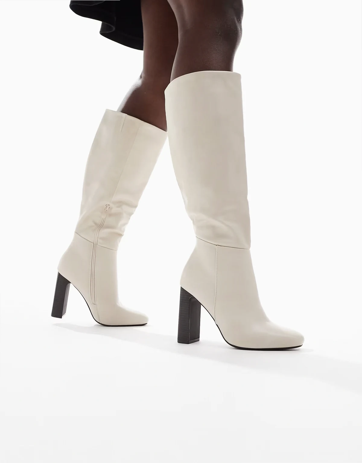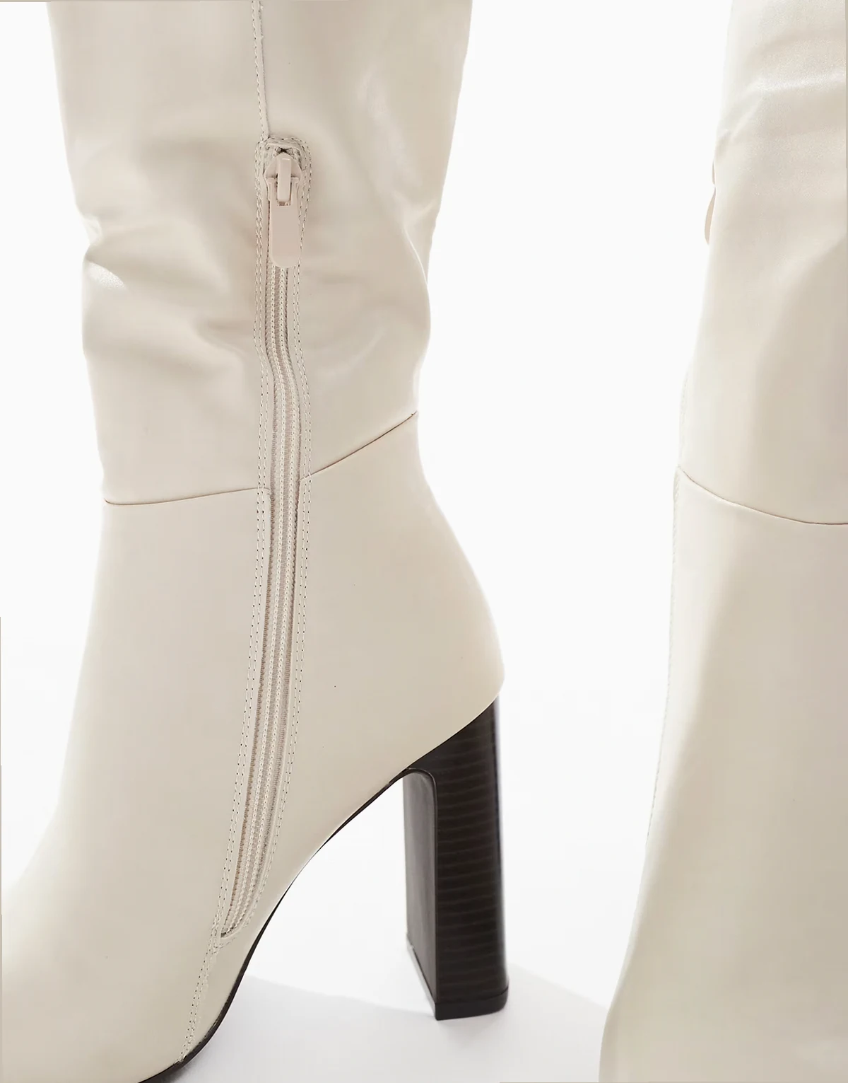 – Boost – Kniehohe Stiefel in Creme mit Schichtabsatz