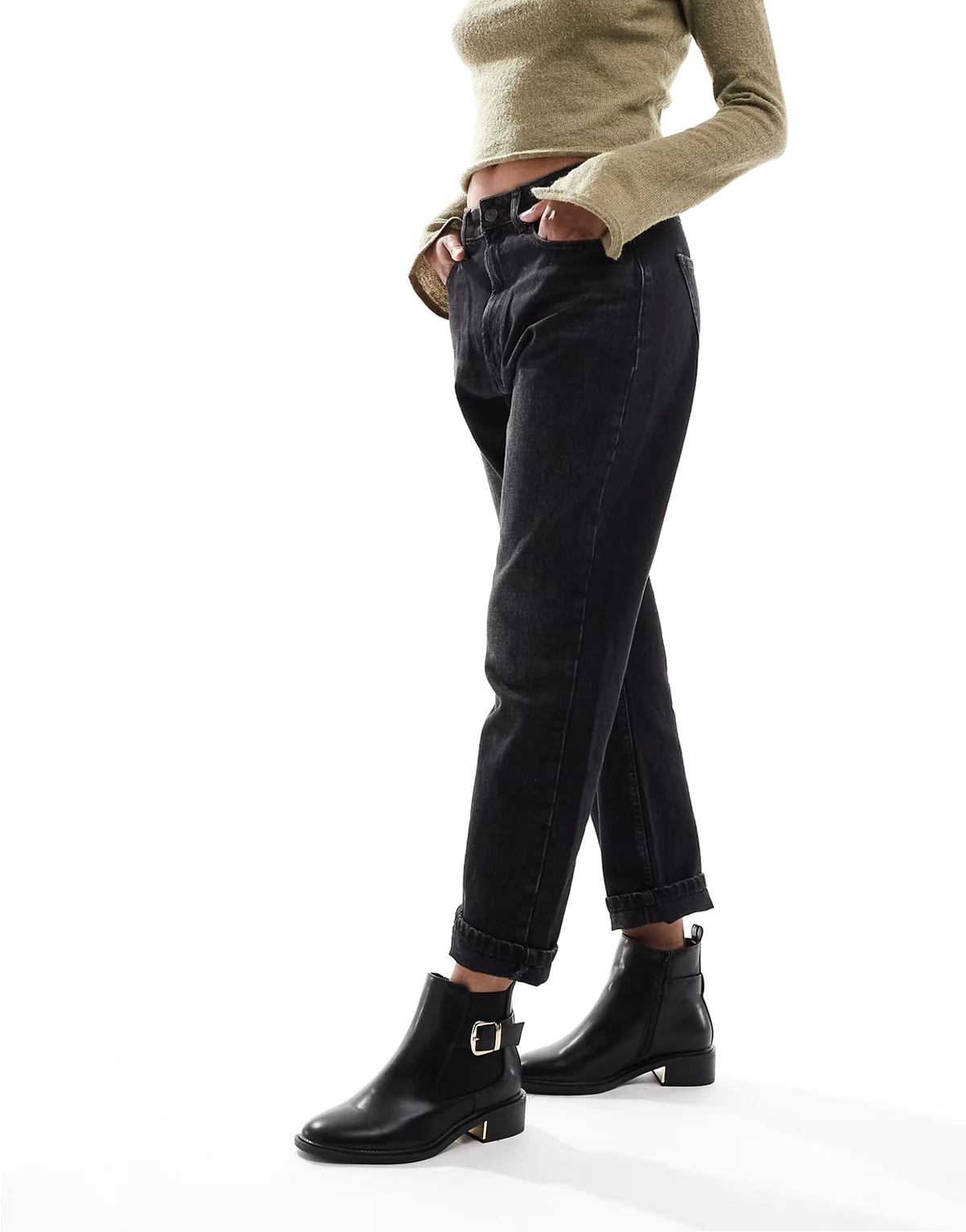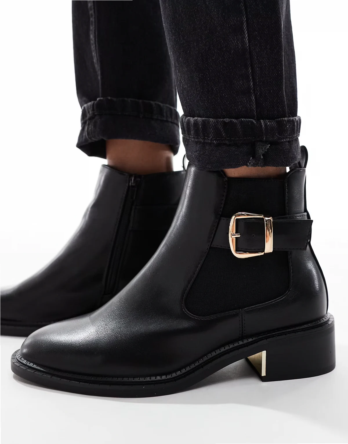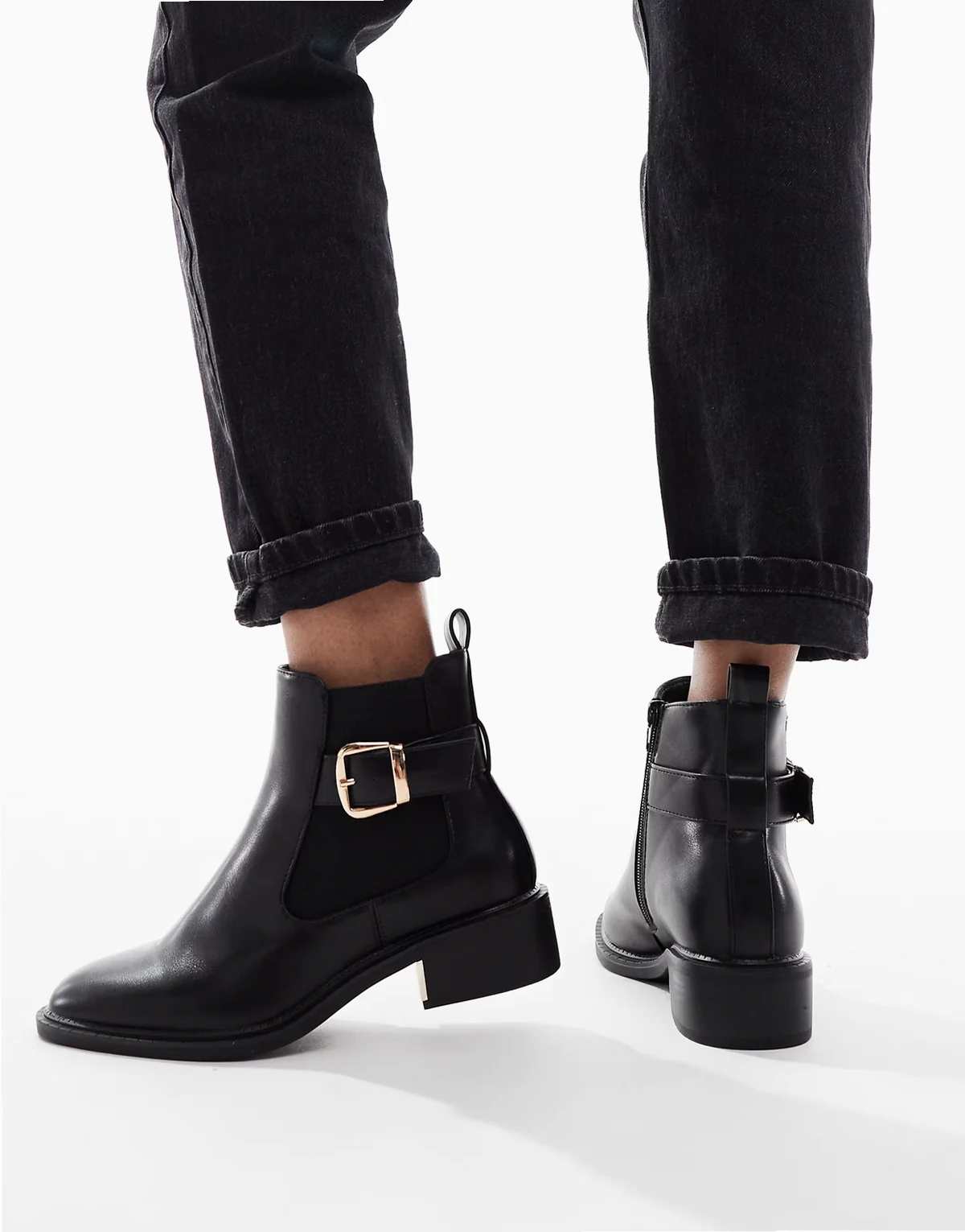 – Latte – Elegante Chelsea-Stiefel in Schwarz mit Schnallen