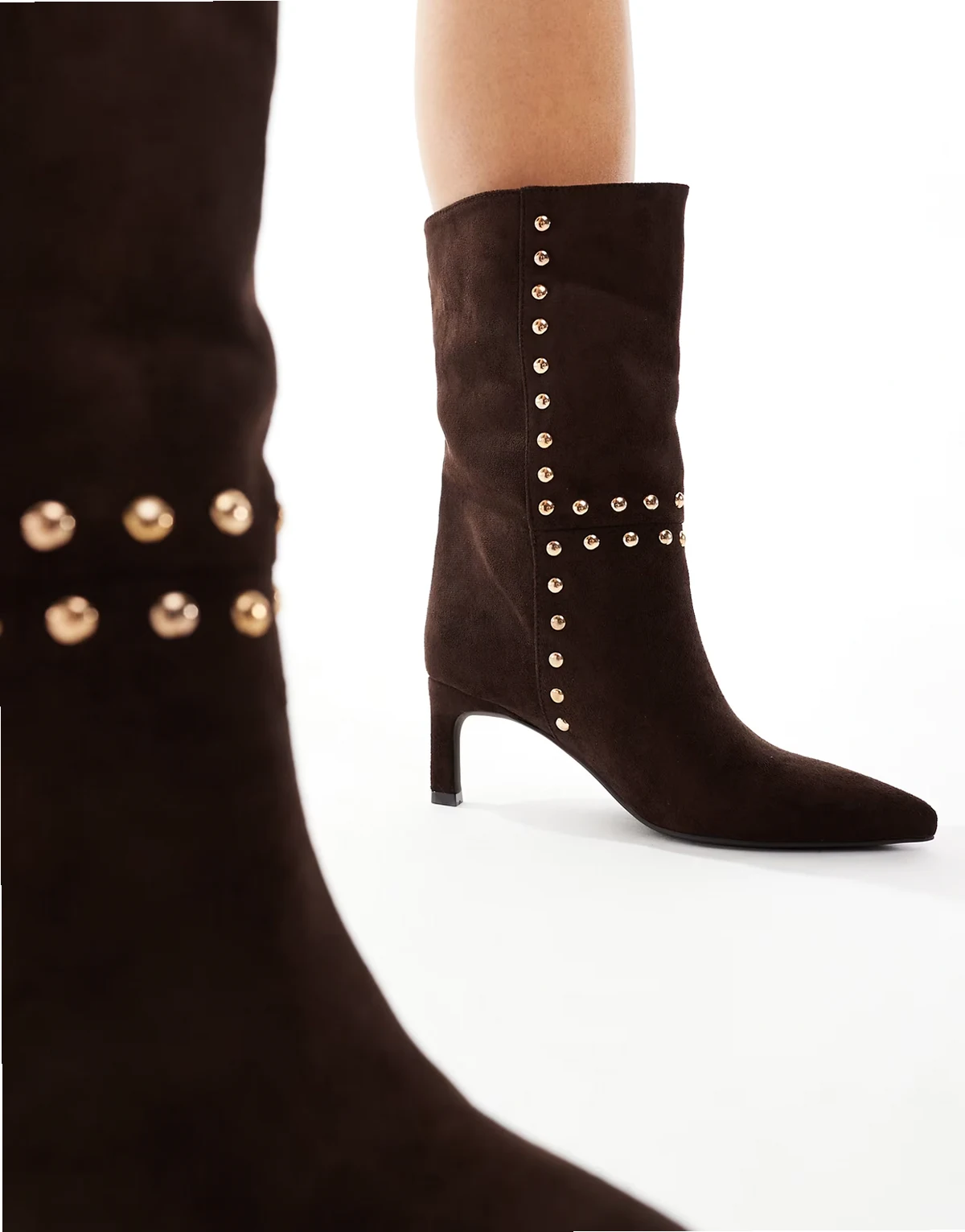 4. – Benz – Ankle-Boots in Schokobraun mit Pfennigabsatz und Nieten