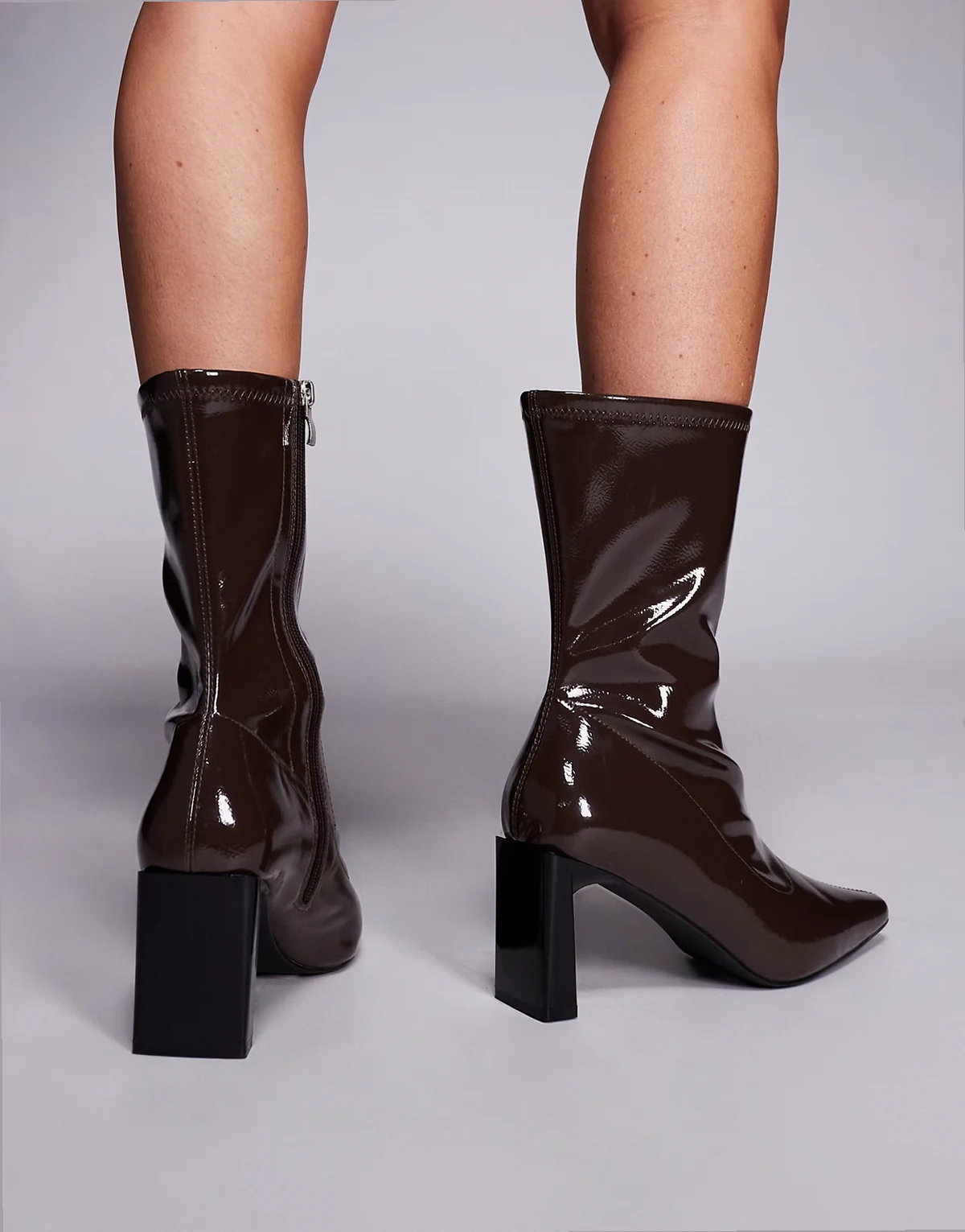 – Robert – Stiefeletten in Dunkelbraun mit Absatz und Knitterdesign, weite Passform