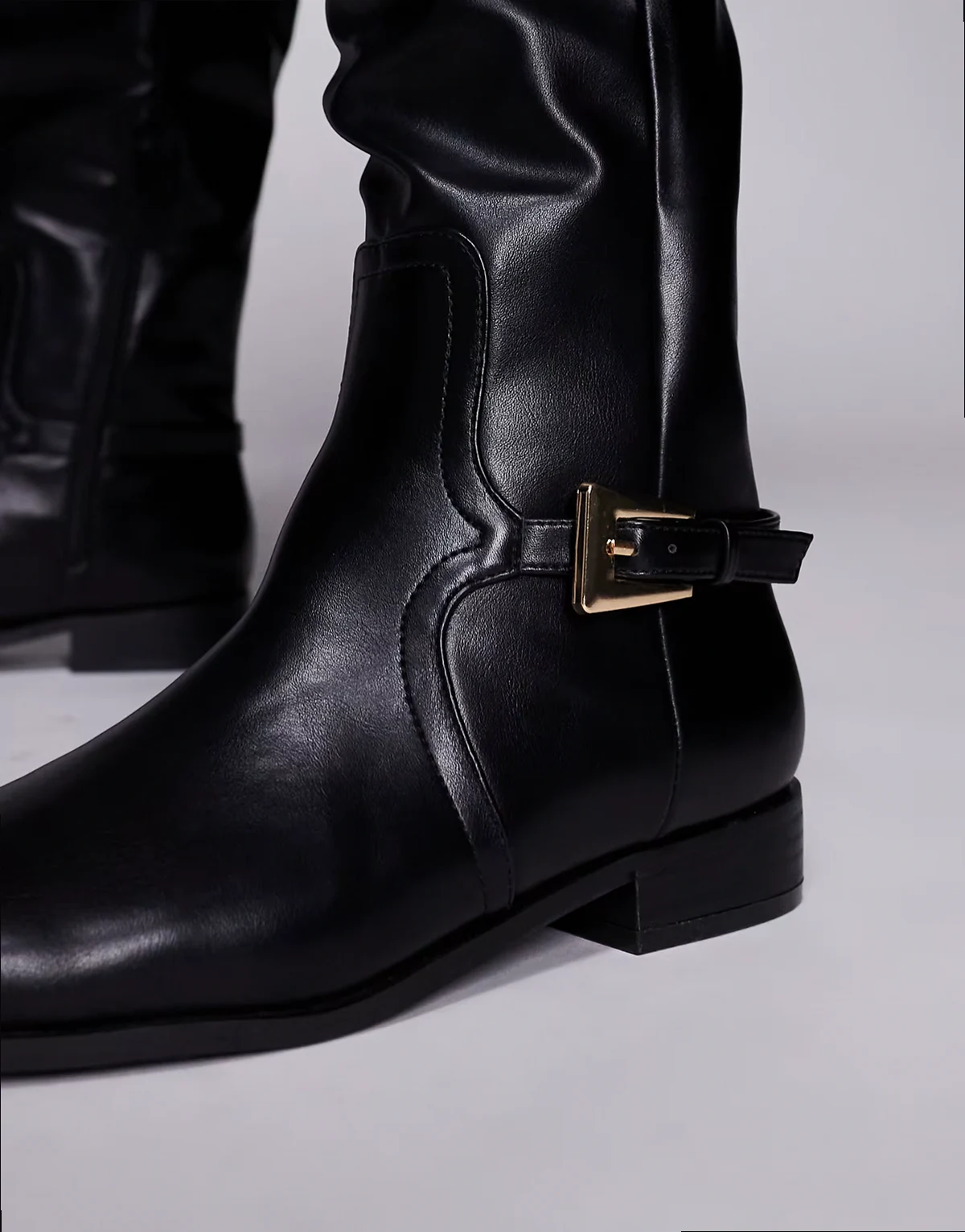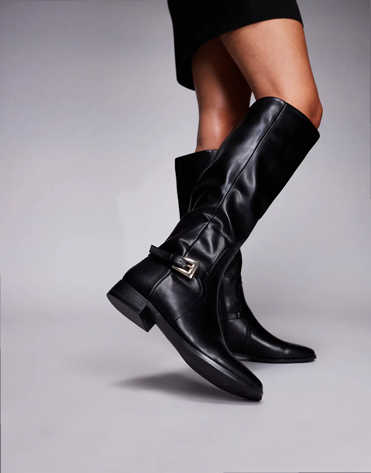 4. – Mackie – Kniehohe Stiefel in Schwarz mit Schnalle