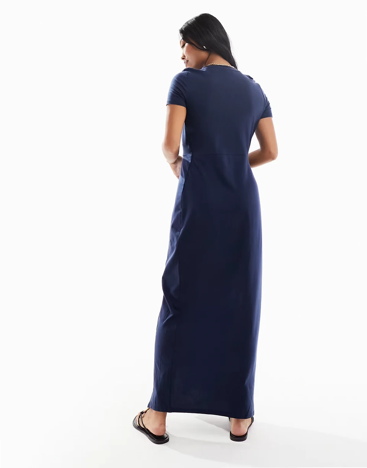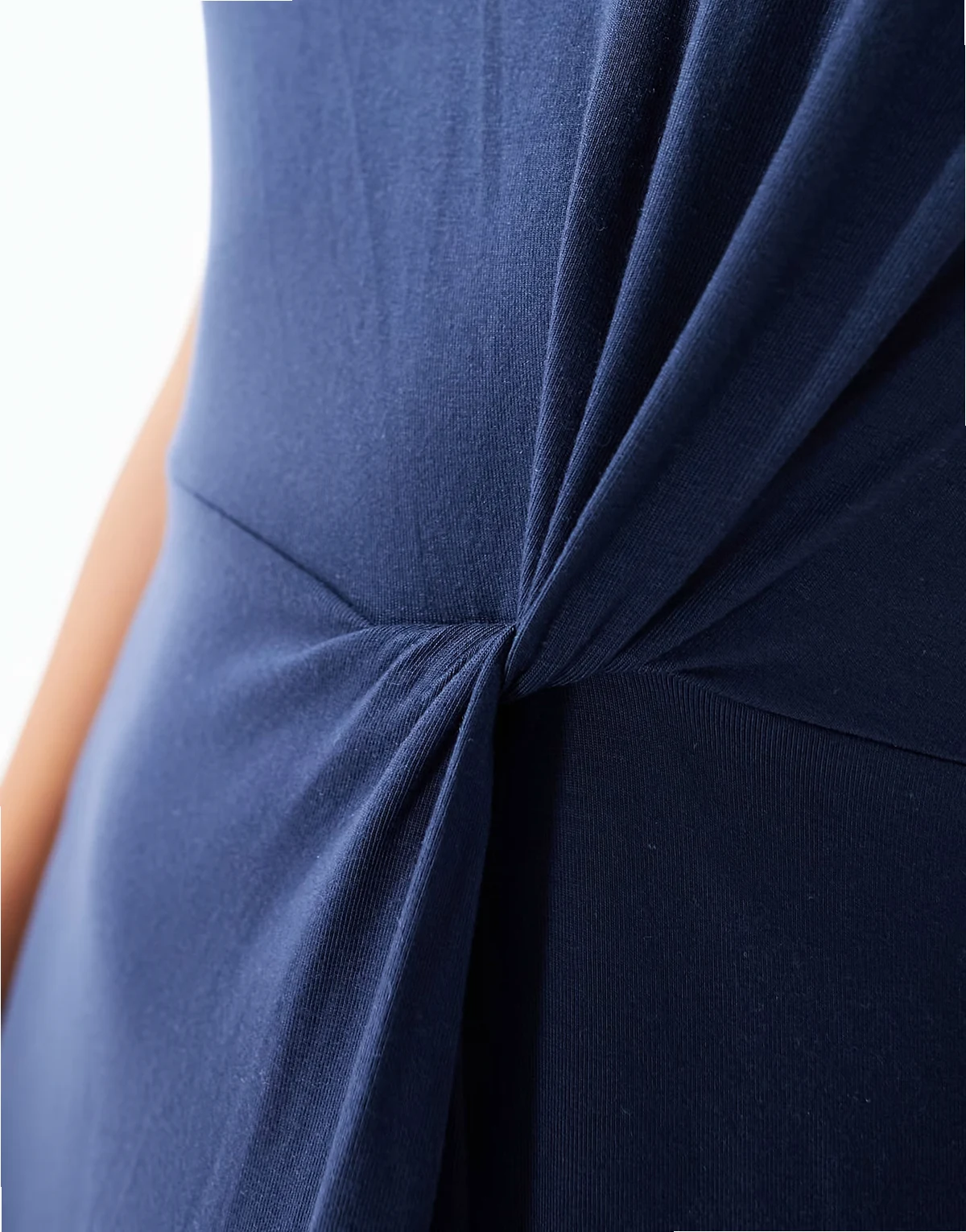 – Langes T-Shirt-Kleid in Marineblau mit Knotendetail und Schlitz