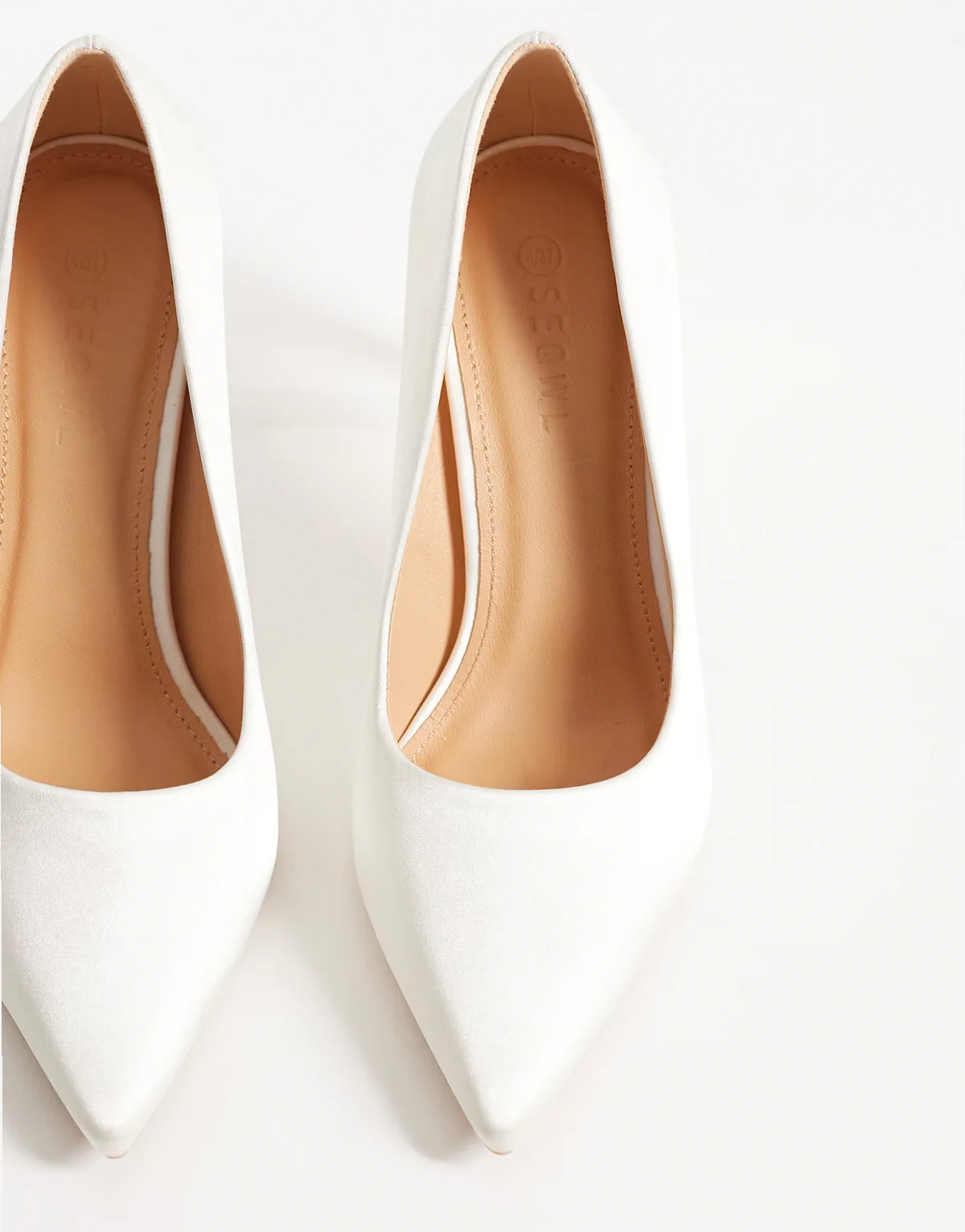 – Bridal Cora – Sandalen aus Satin in Elfenbeinweiß mit Absatz, weite Passform