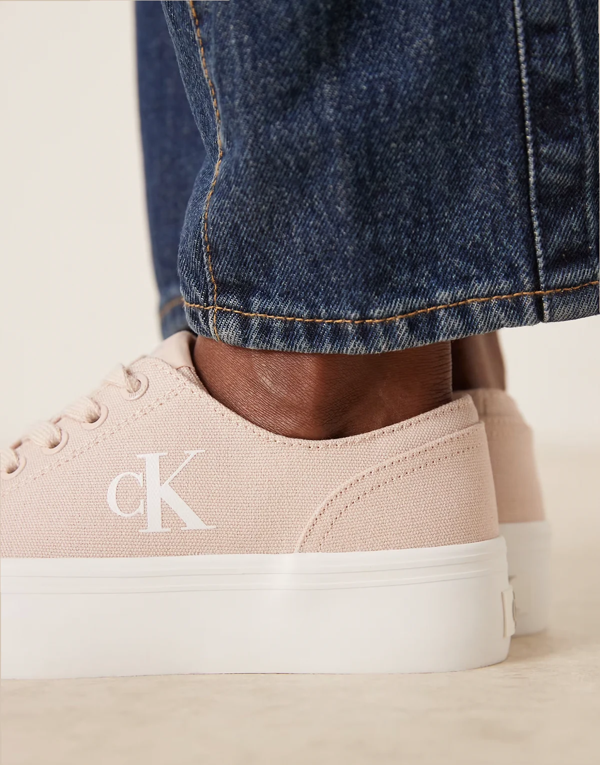 Jeans – Vulc – Canvas-Sneaker in Rosa und Weiß mit flacher Plateausohle