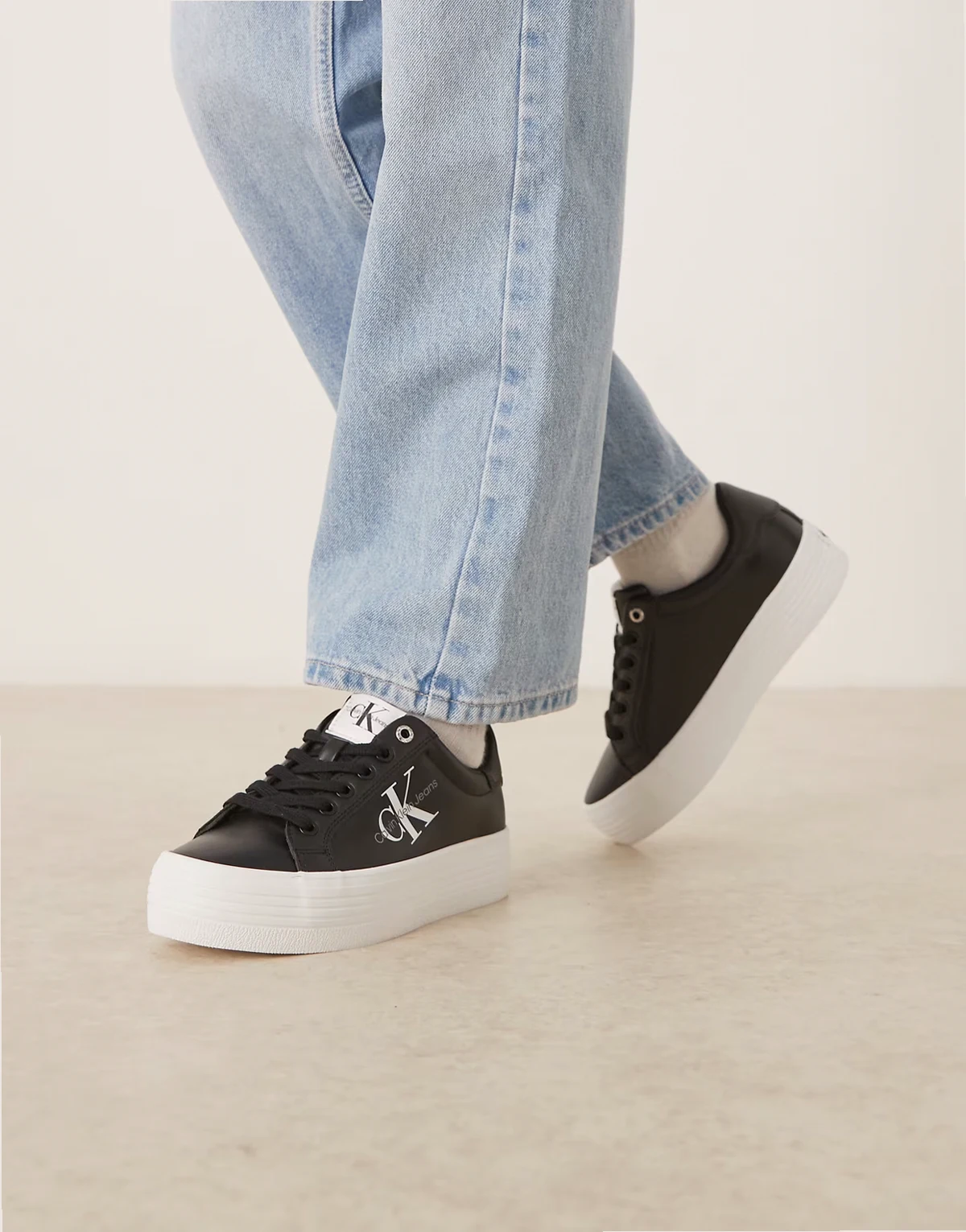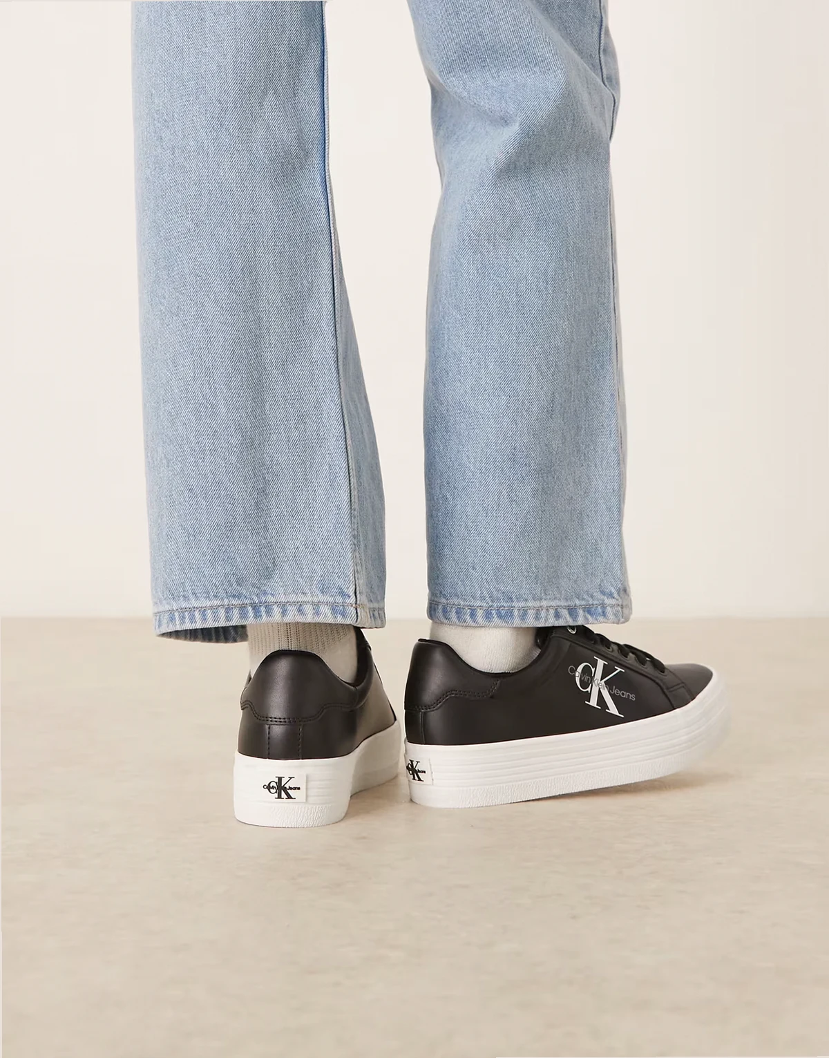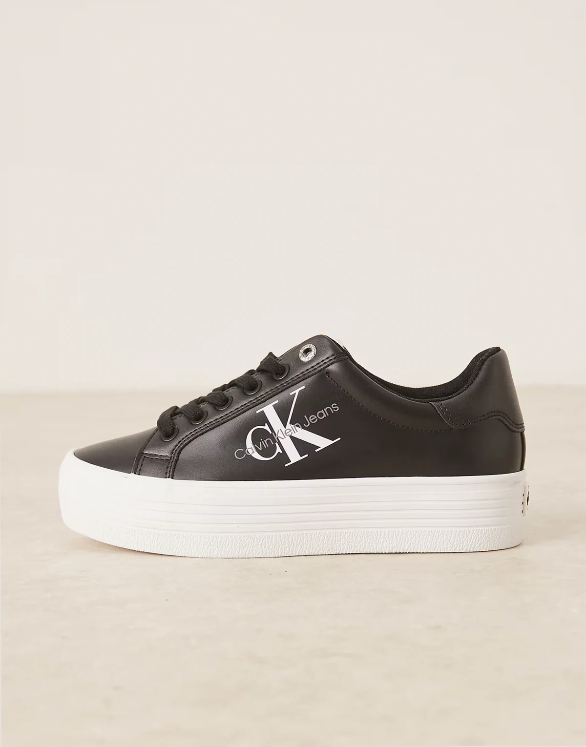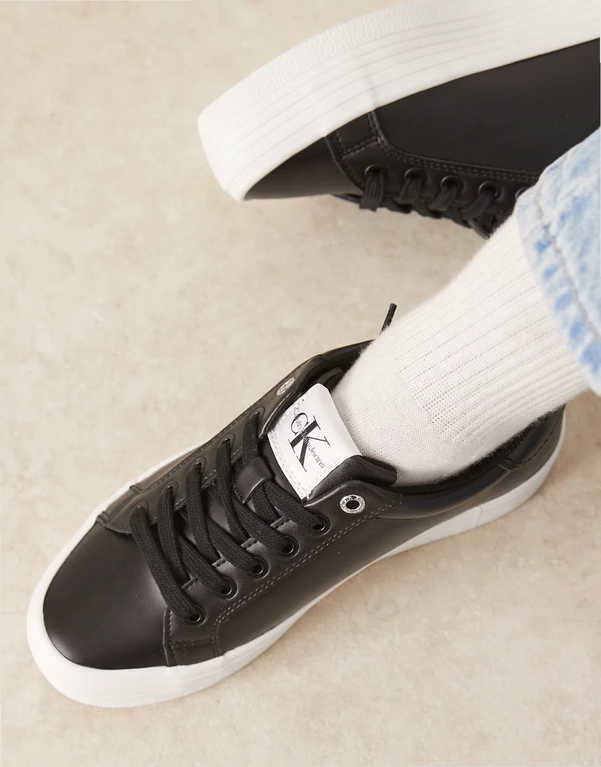 – Sneaker in Schwarz und Weiß mit flacher, vulkanisierter Plateausohle