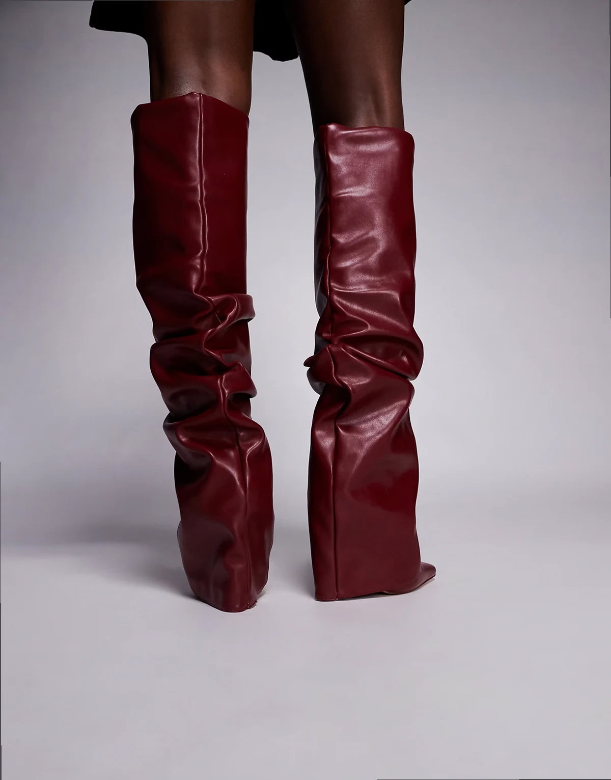 Simmi London – Lukas – Kniehohe Stiefel in Burgunderrot mit umgeschlagenem, gerafftem Schaft