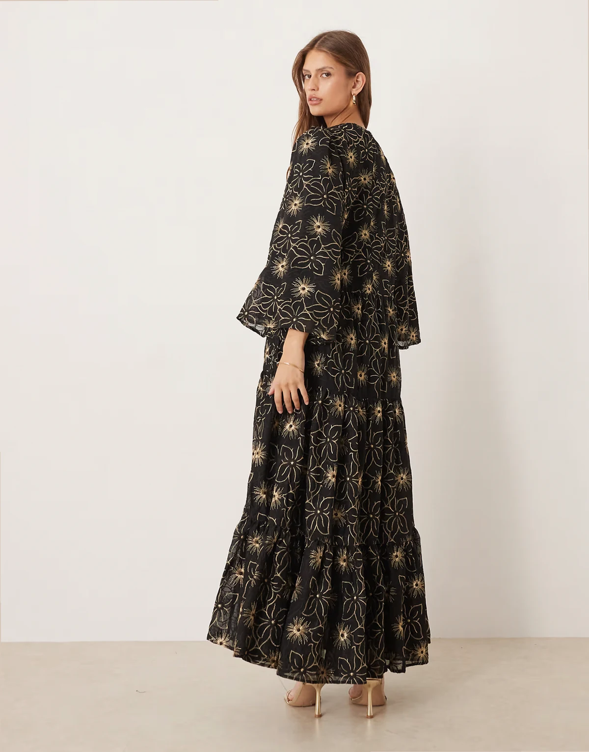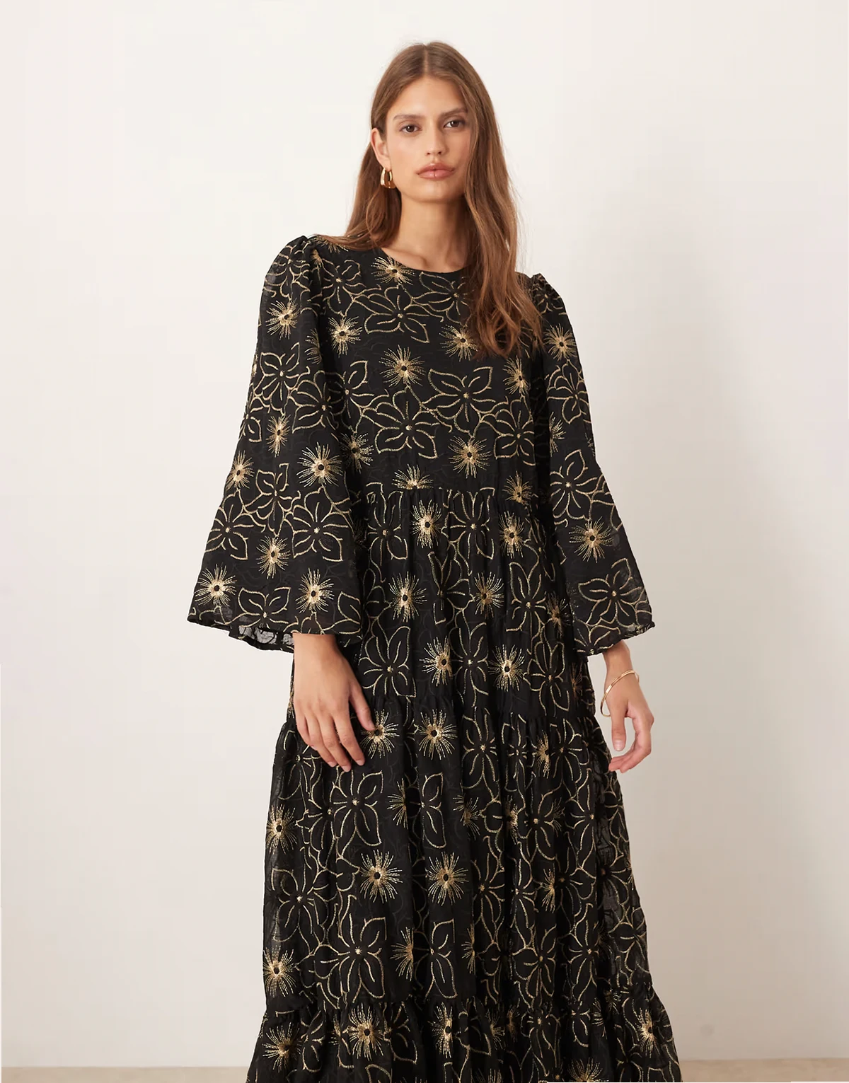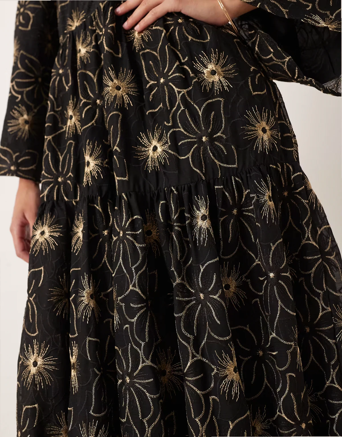 – Dream – Gesmoktes Maxikleid in Schwarz mit Stickerei