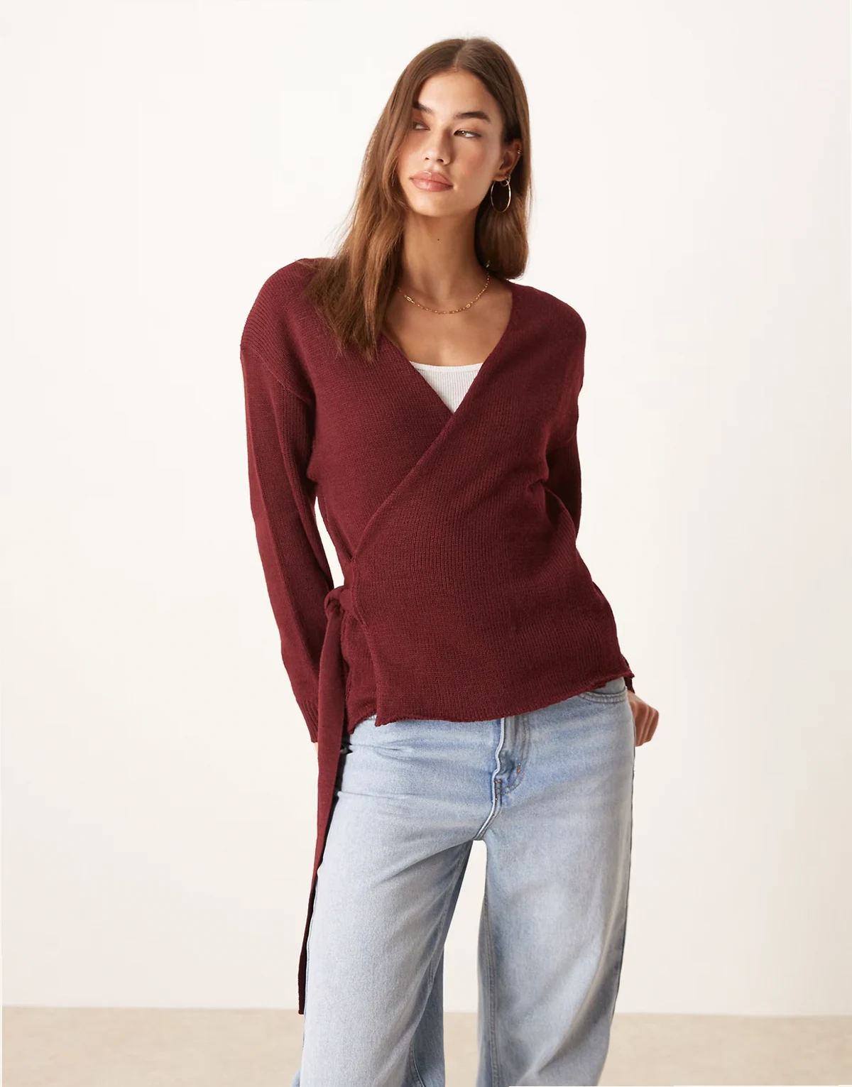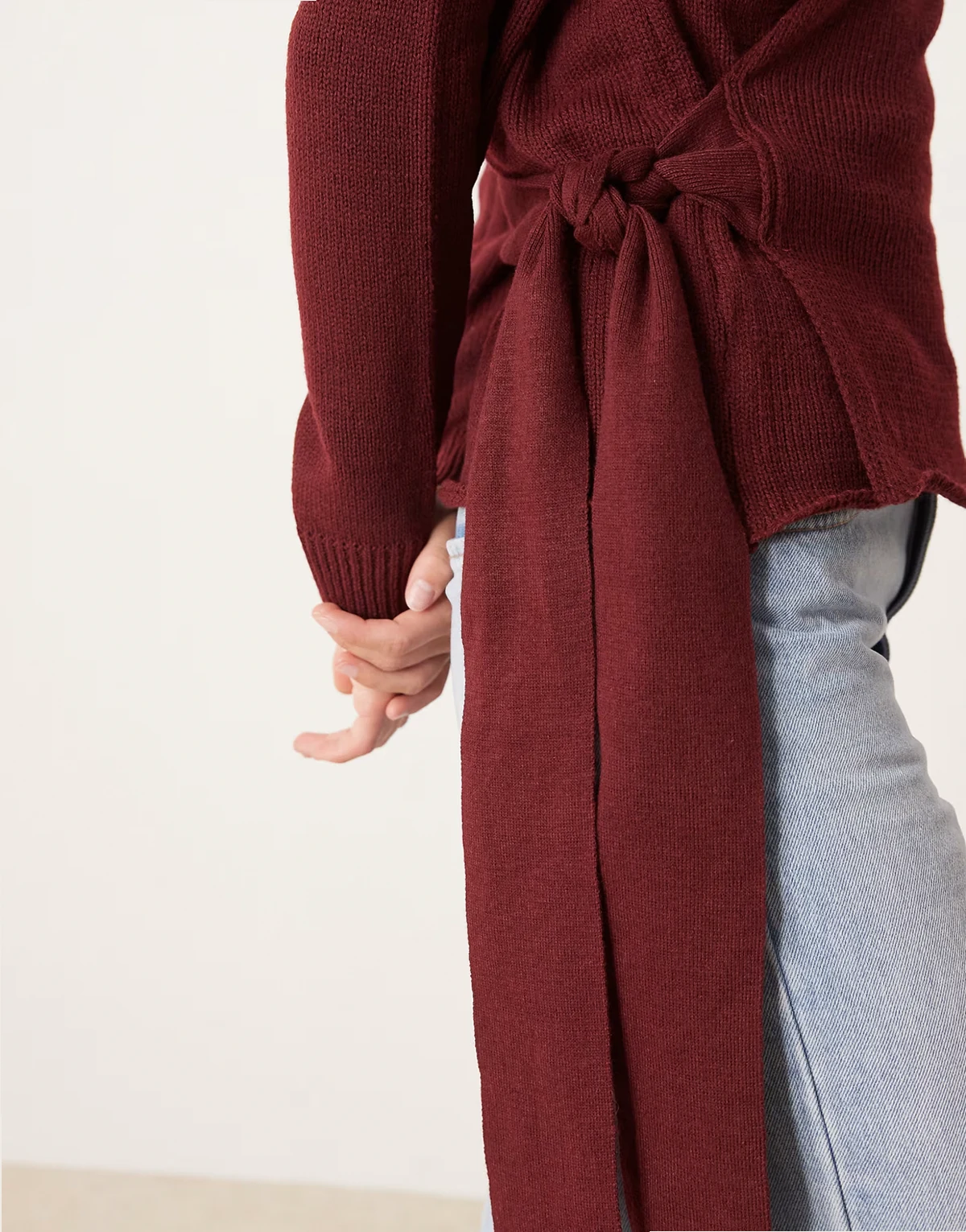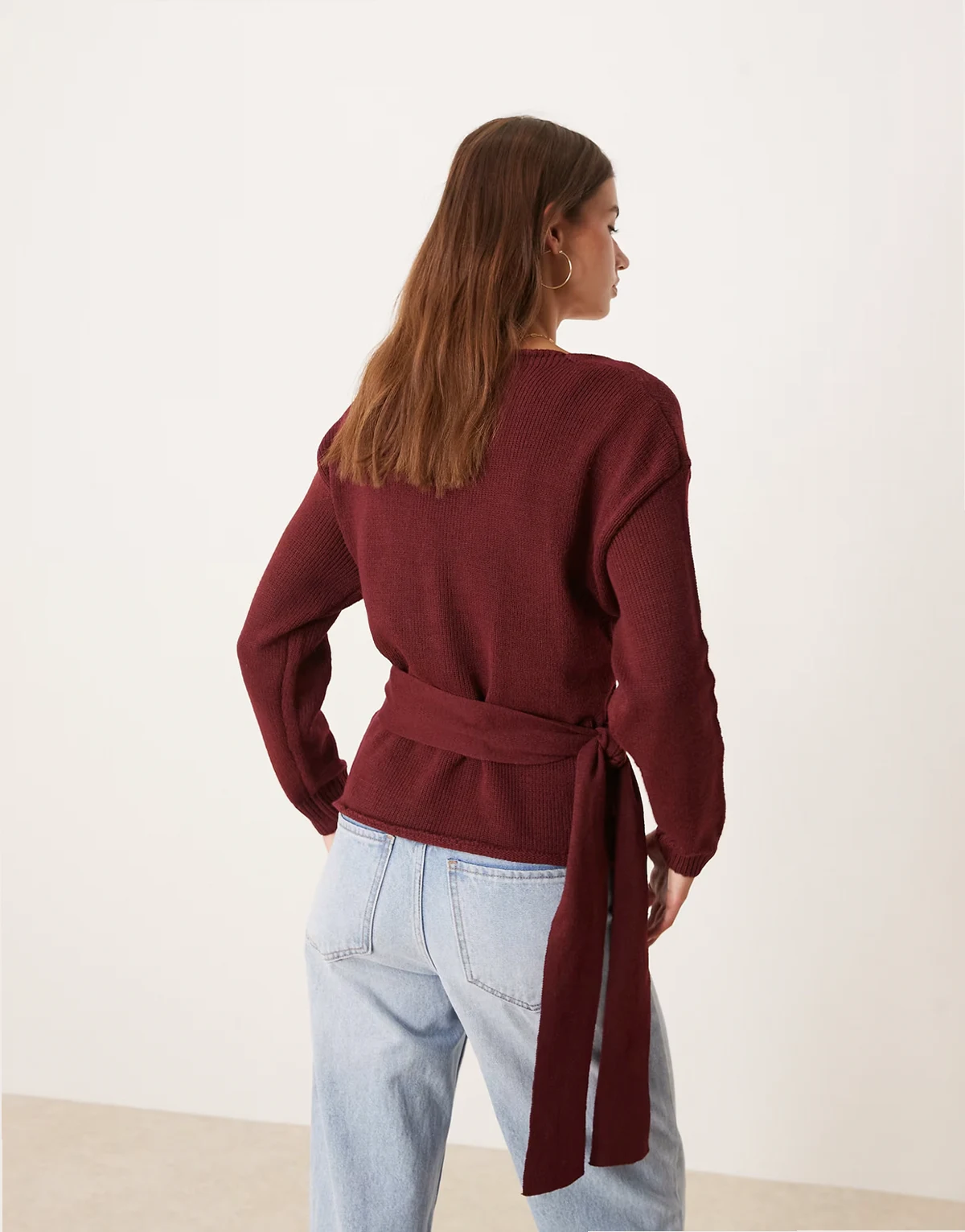 – Pullover in Burgunderrot mit Wickeldetail vorne