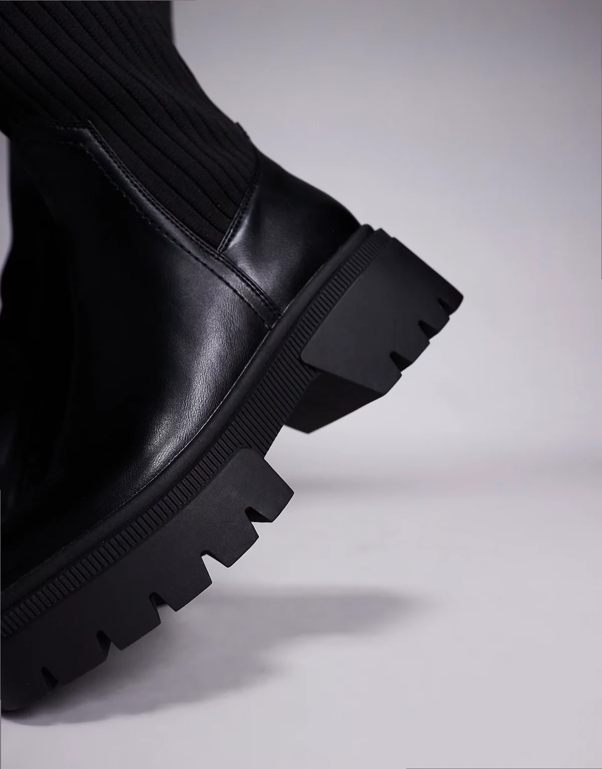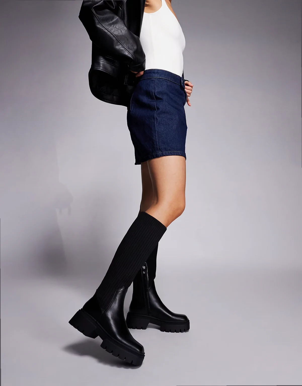 Simmi London – Kniehohe Stiefel in Schwarz mit schmalem Schaft