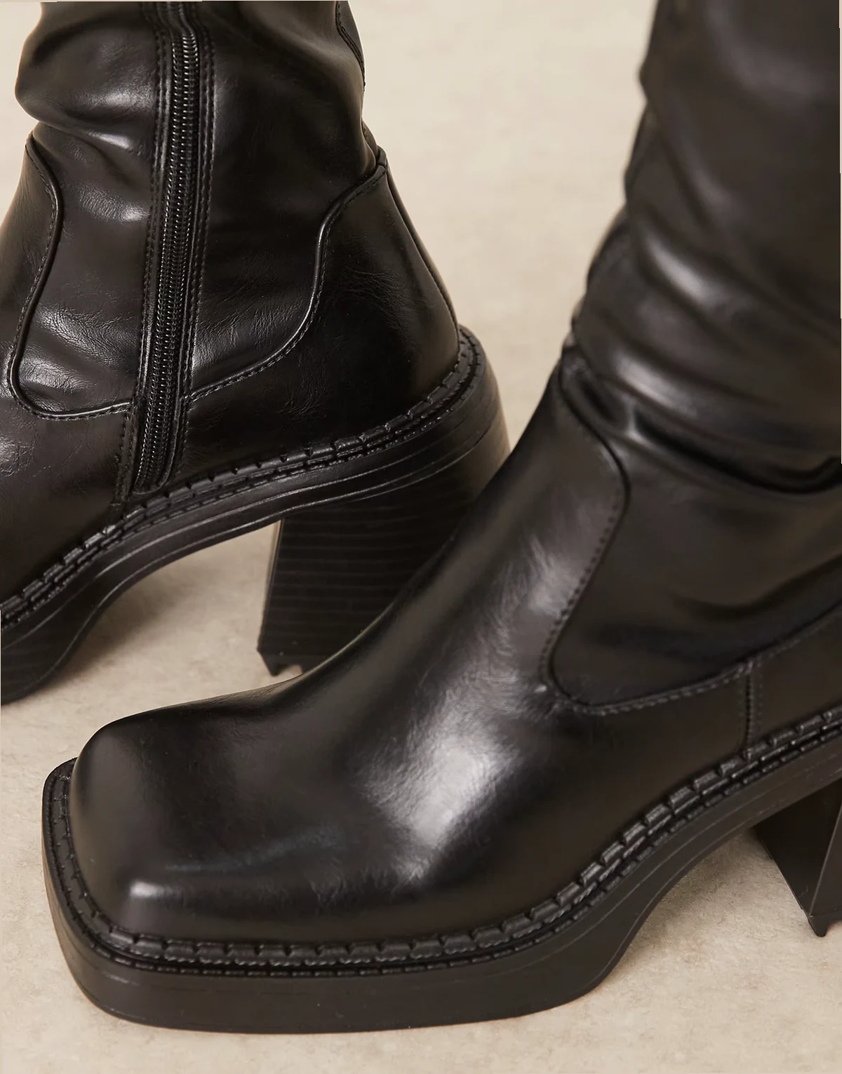 – Charly – Kniehohe Absatz-Stiefel in Schwarz