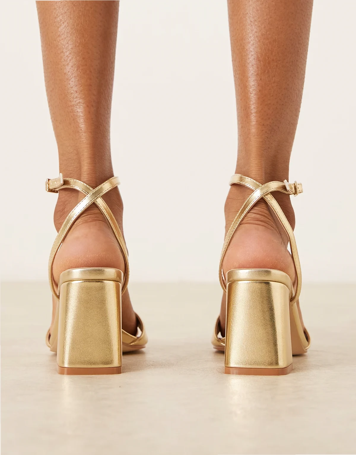 4. – Cora – Sandaletten in Gold mit Blockabsatz