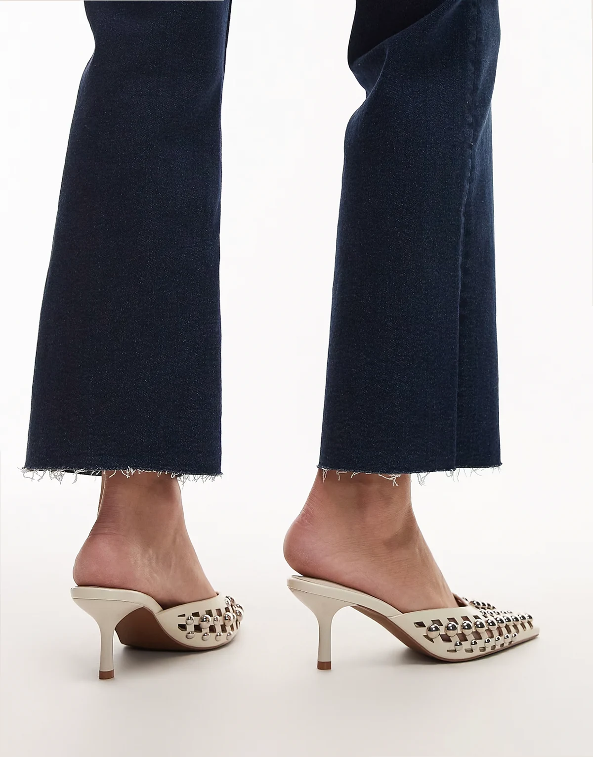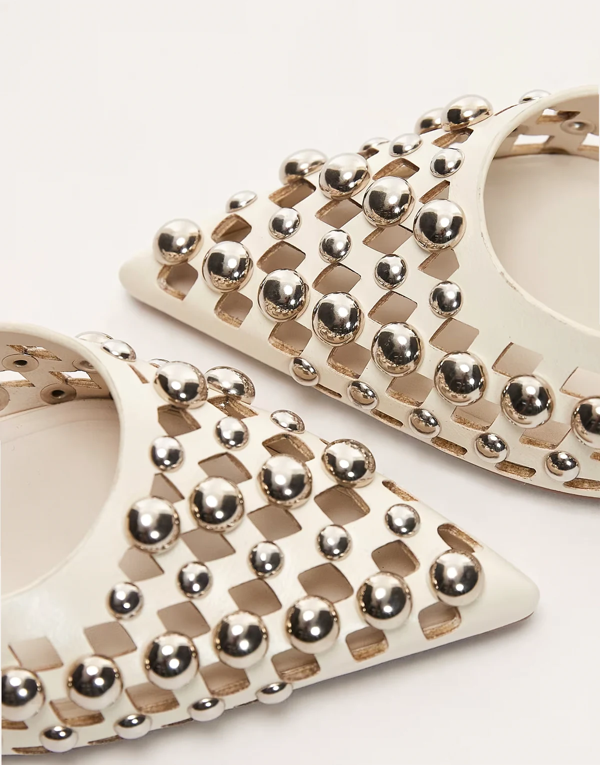 4. – Sia – Verzierte Mules in Wollweiß mit Cut-Out und Kitten-Absatz