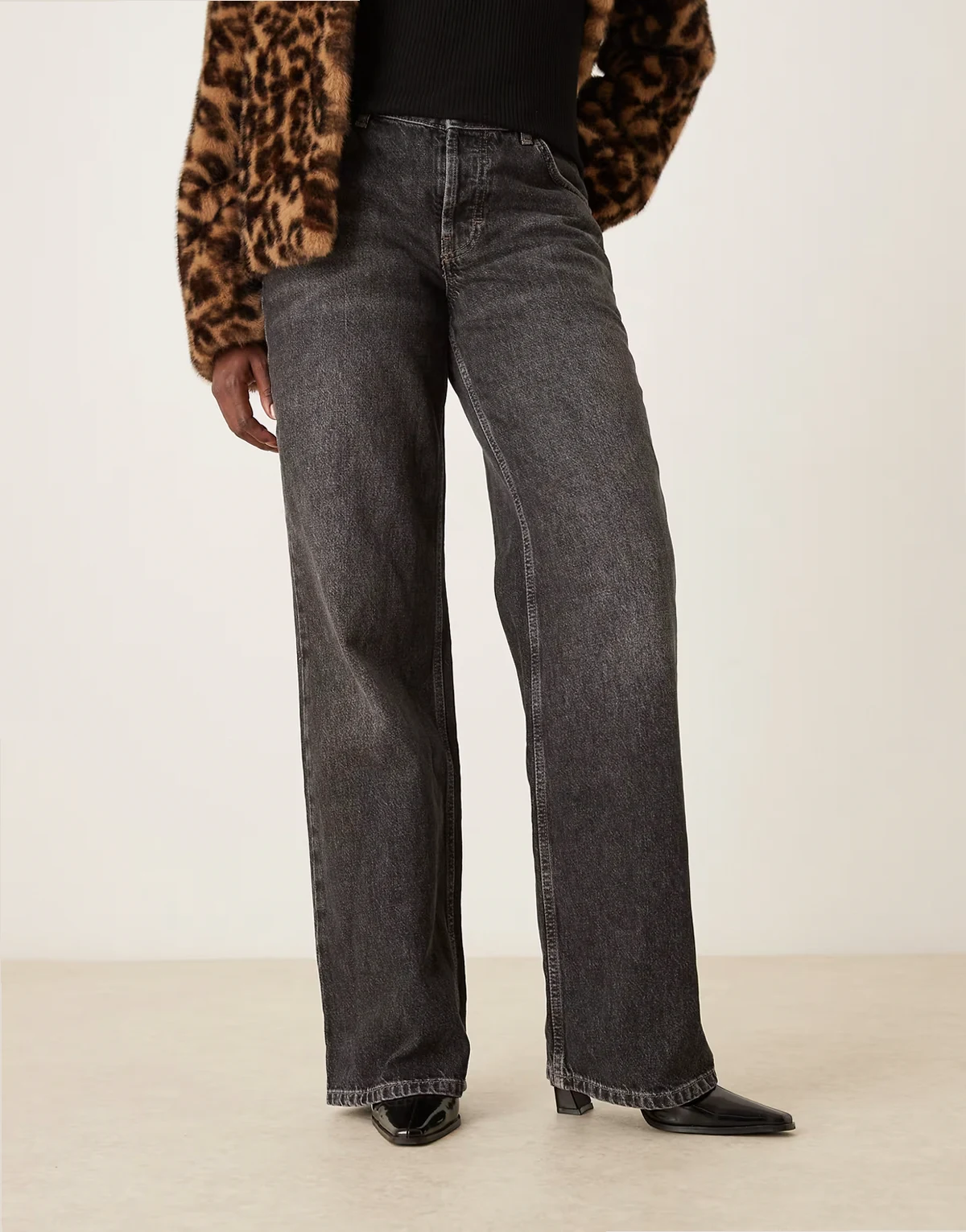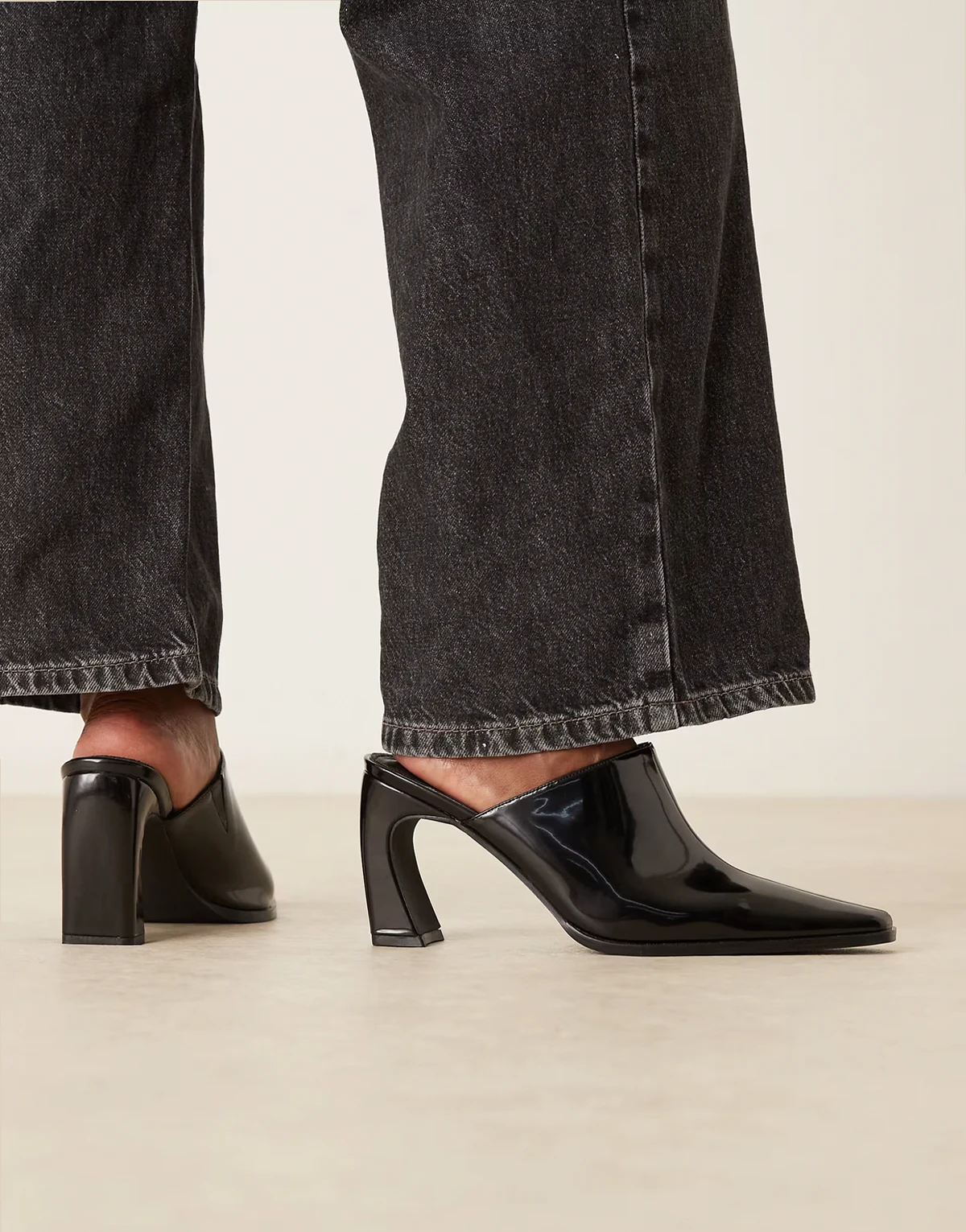 – Hania – Mules in Schwarz mit gebogenem Absatz und spitzer Zehenpartie