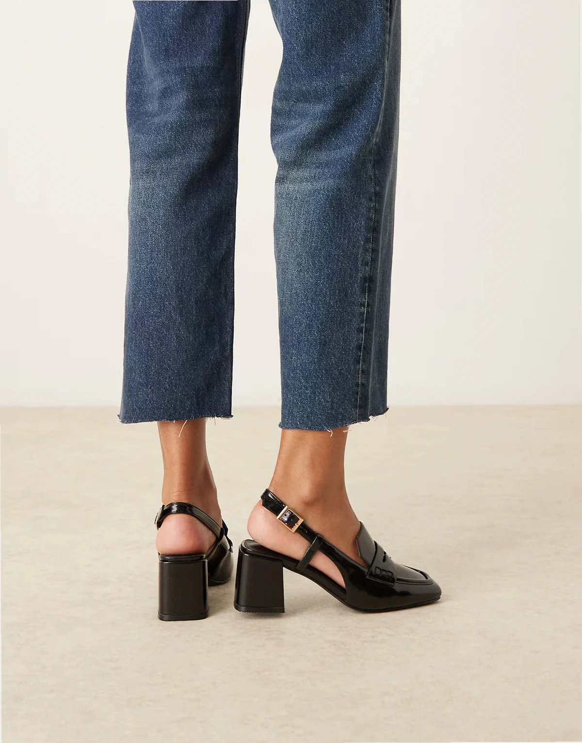 4. – Nisha – Schuhe in schwarzer Lackoptik mit Blockabsatz und Fersenriemchen