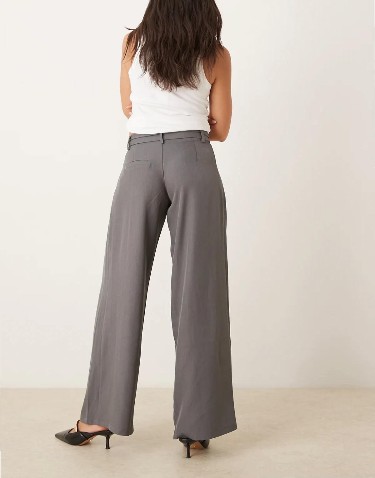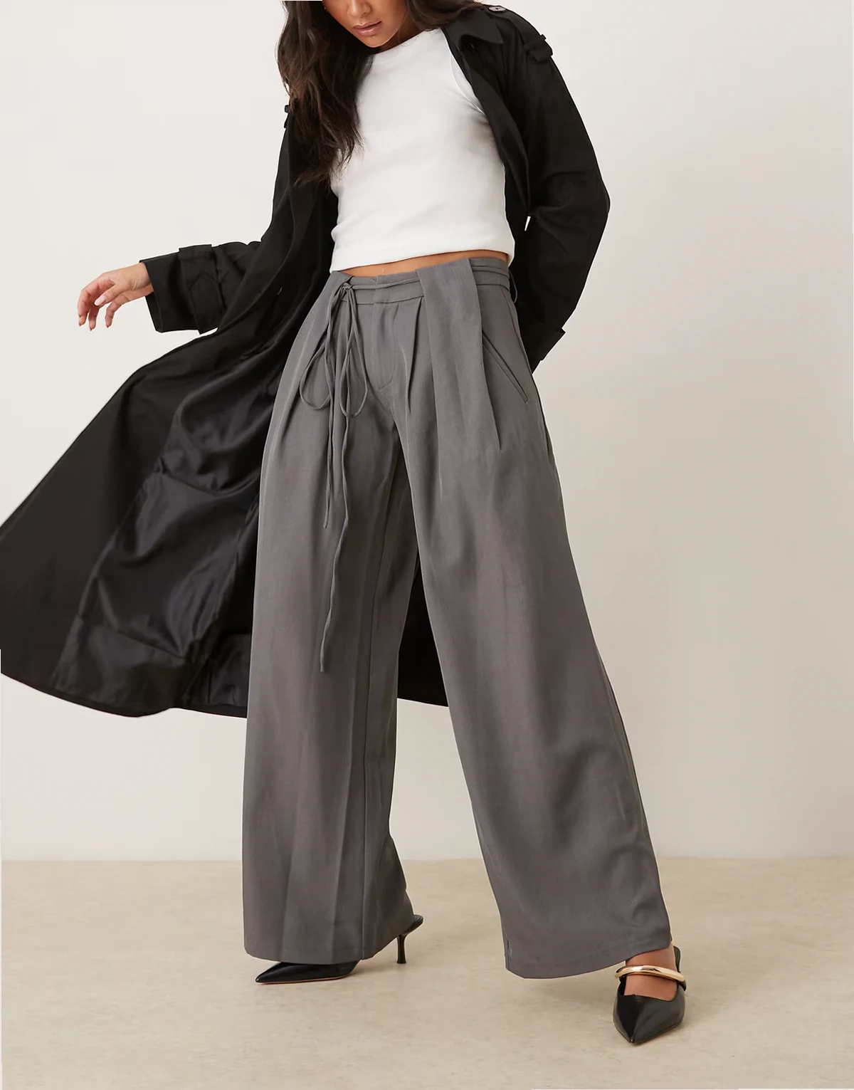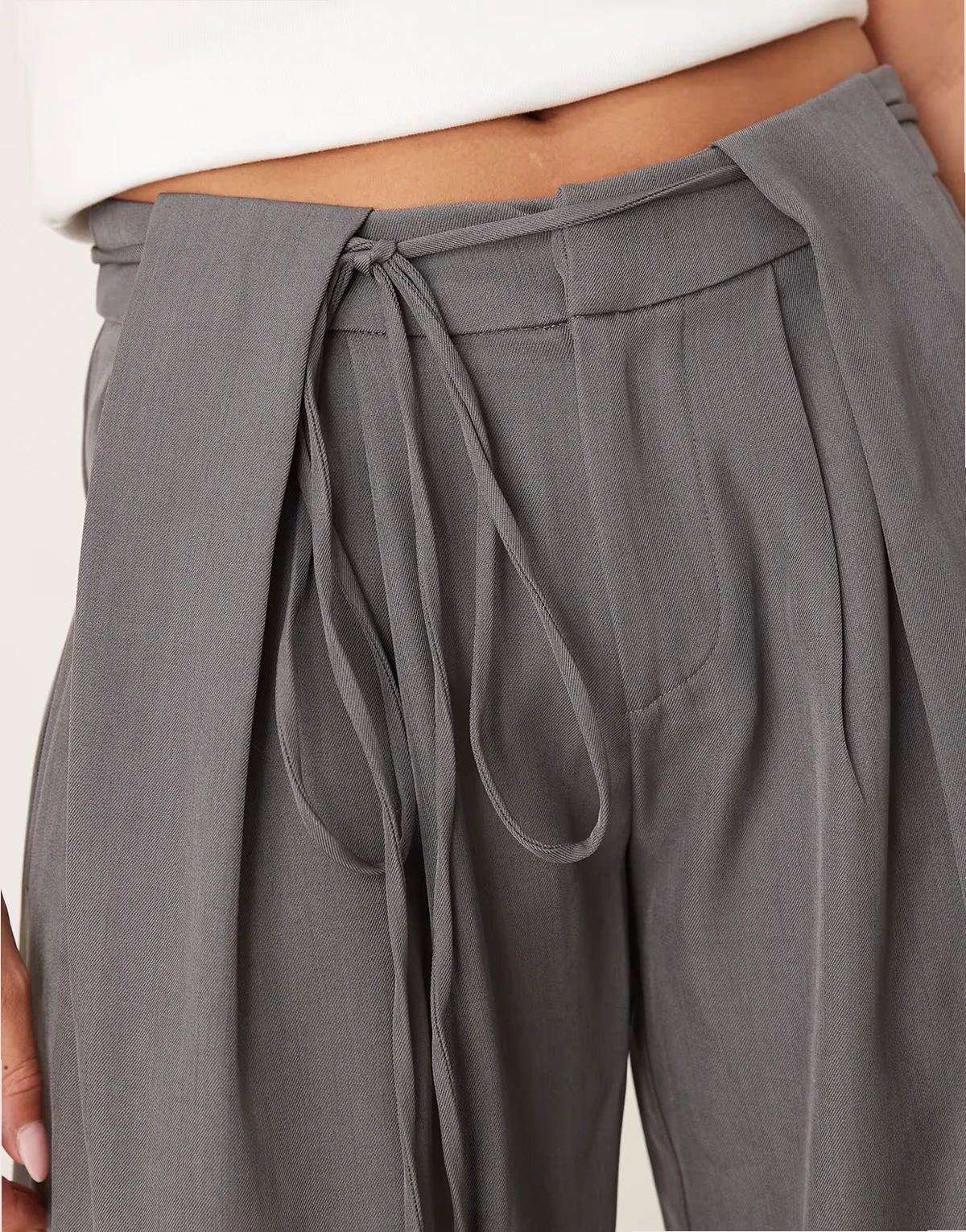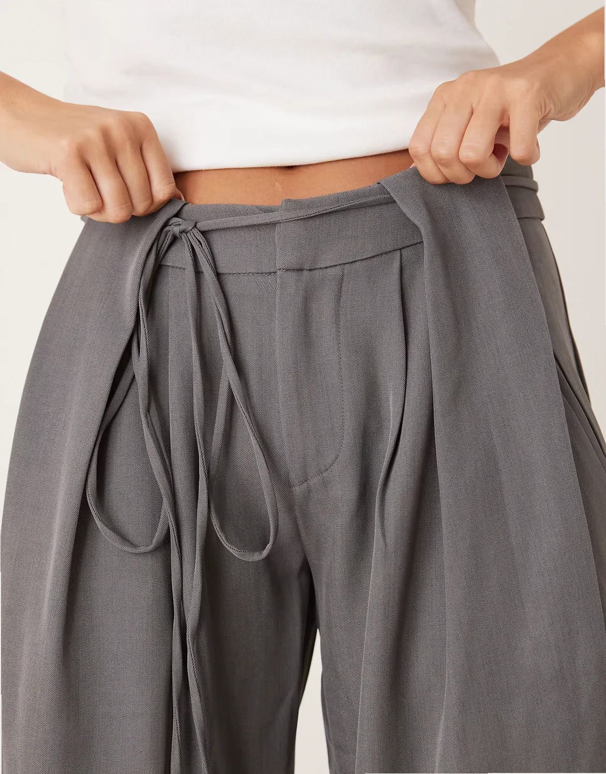 – Rivela – Elegante Hose in Grau mit weitem Bein und Bindegürtel