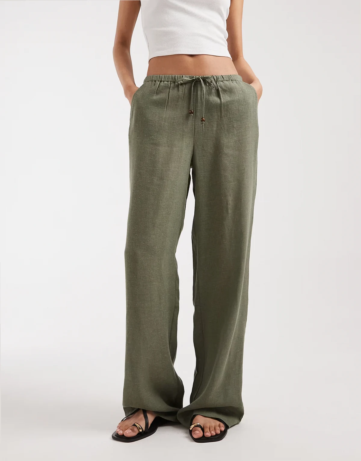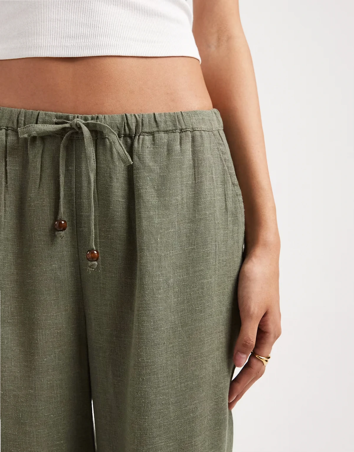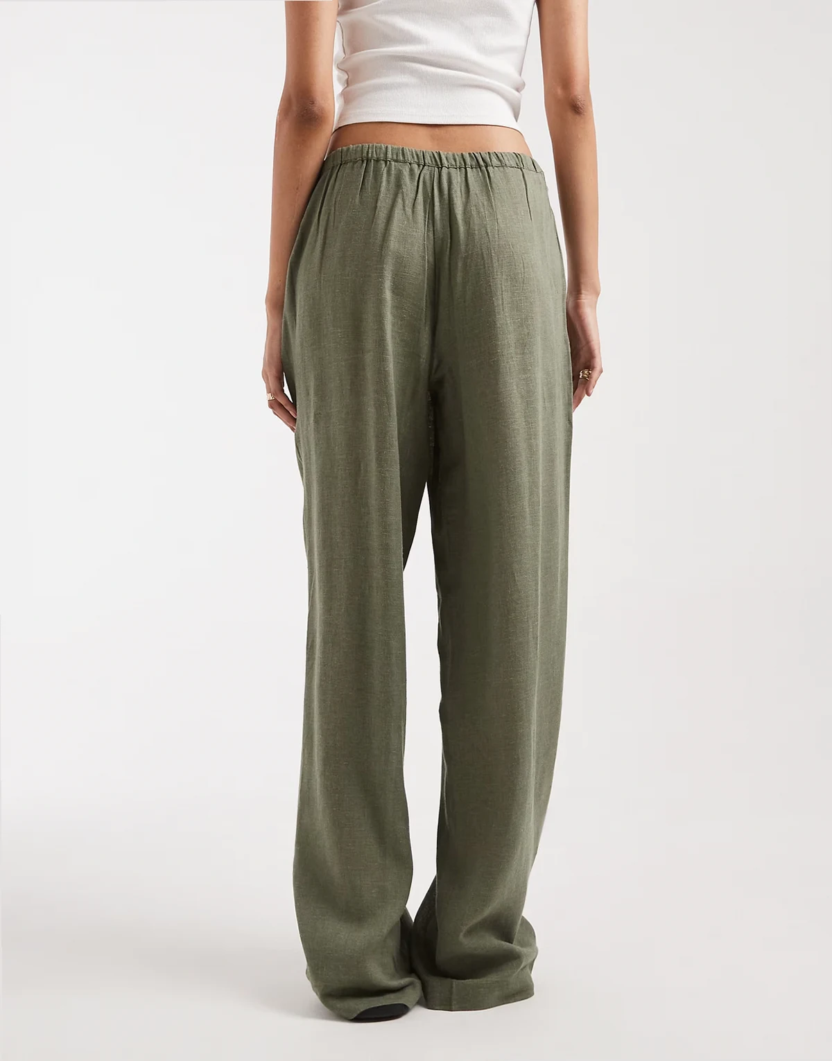 – Hose aus Leinenmix in hellem Khaki mit weitem Bein