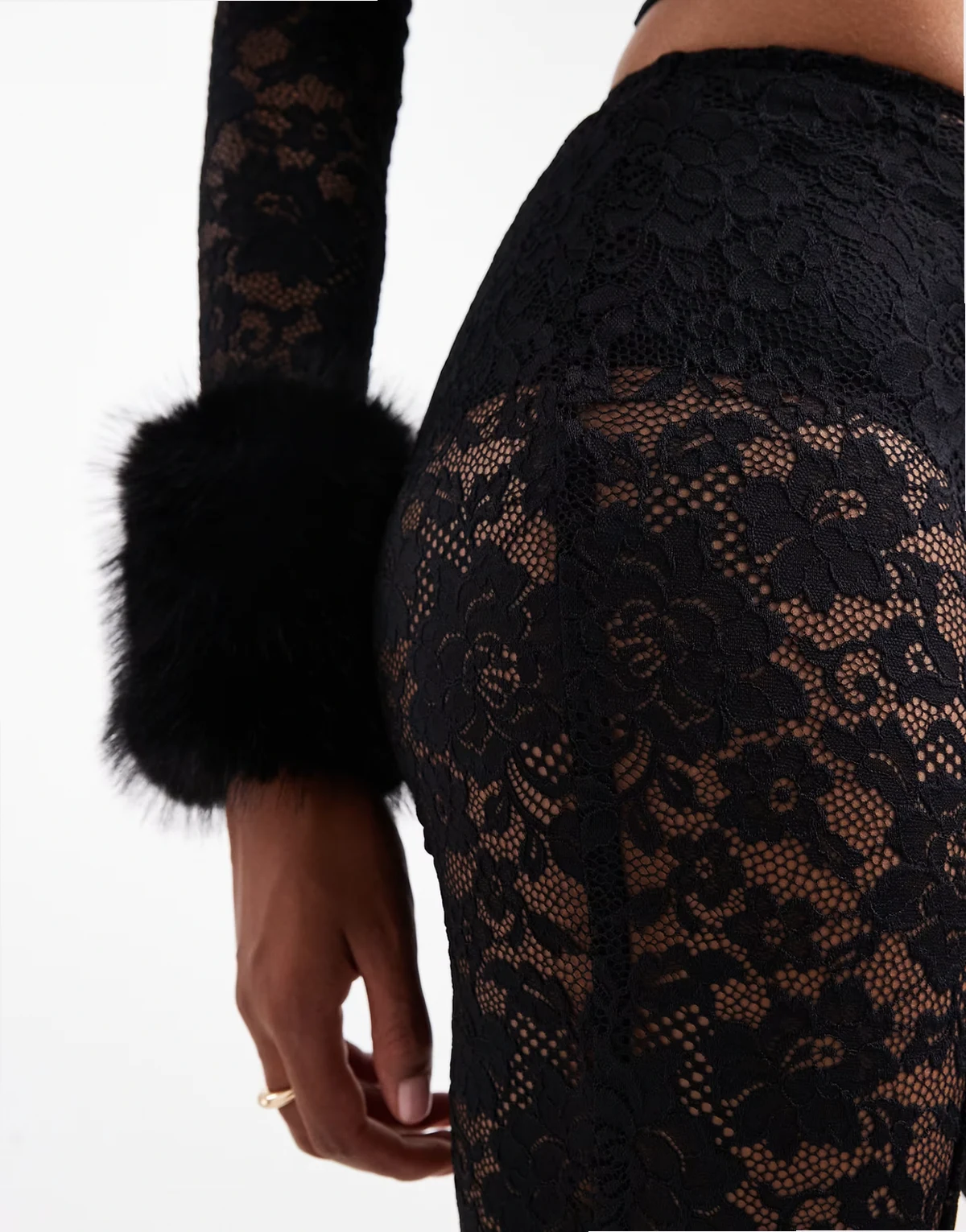 – Schlaghose aus Spitze in Schwarz mit niedrigem Bund, Kombiteil