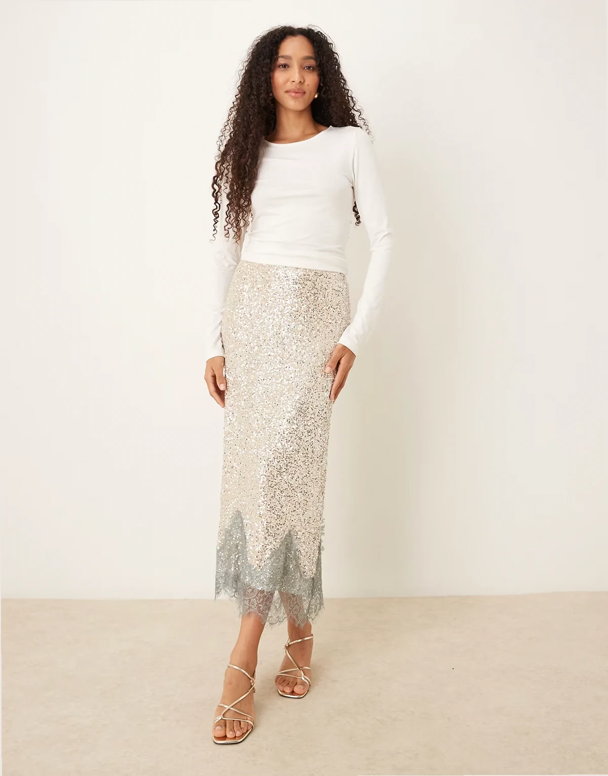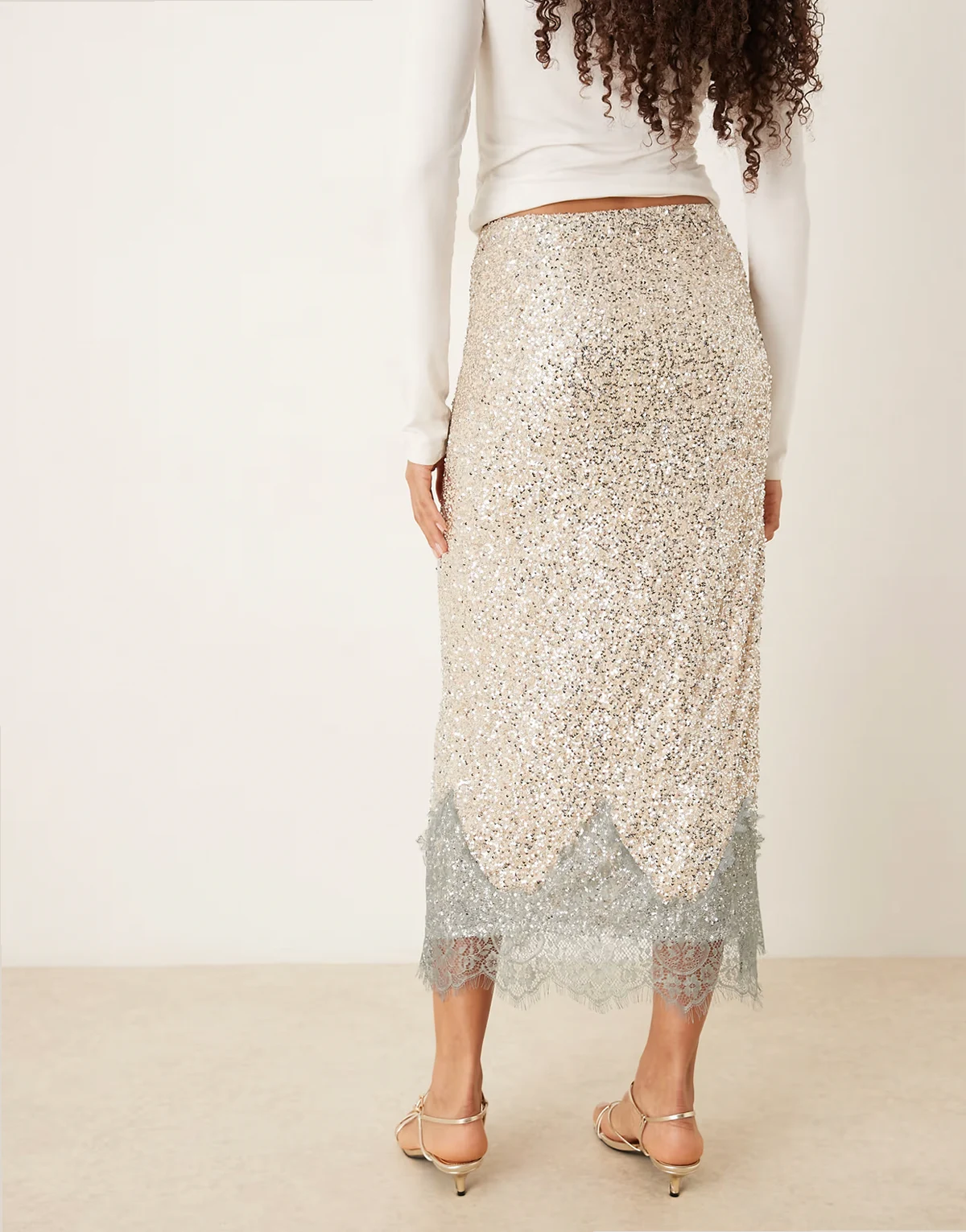 – Maeva – Midaxi-Rock mit silberfarbenen Pailletten und Spitzenbesatz