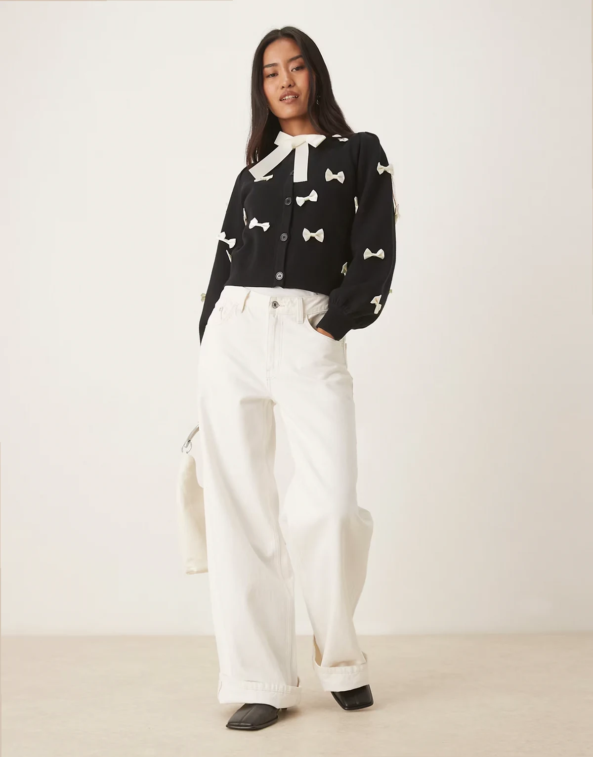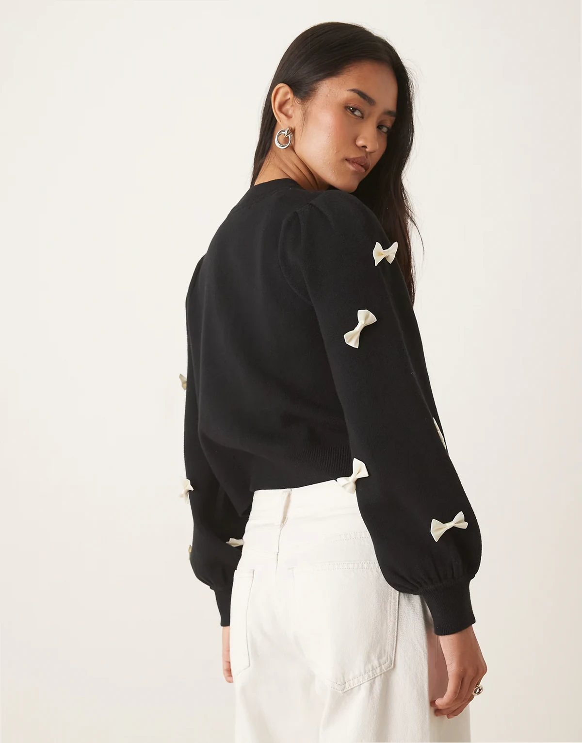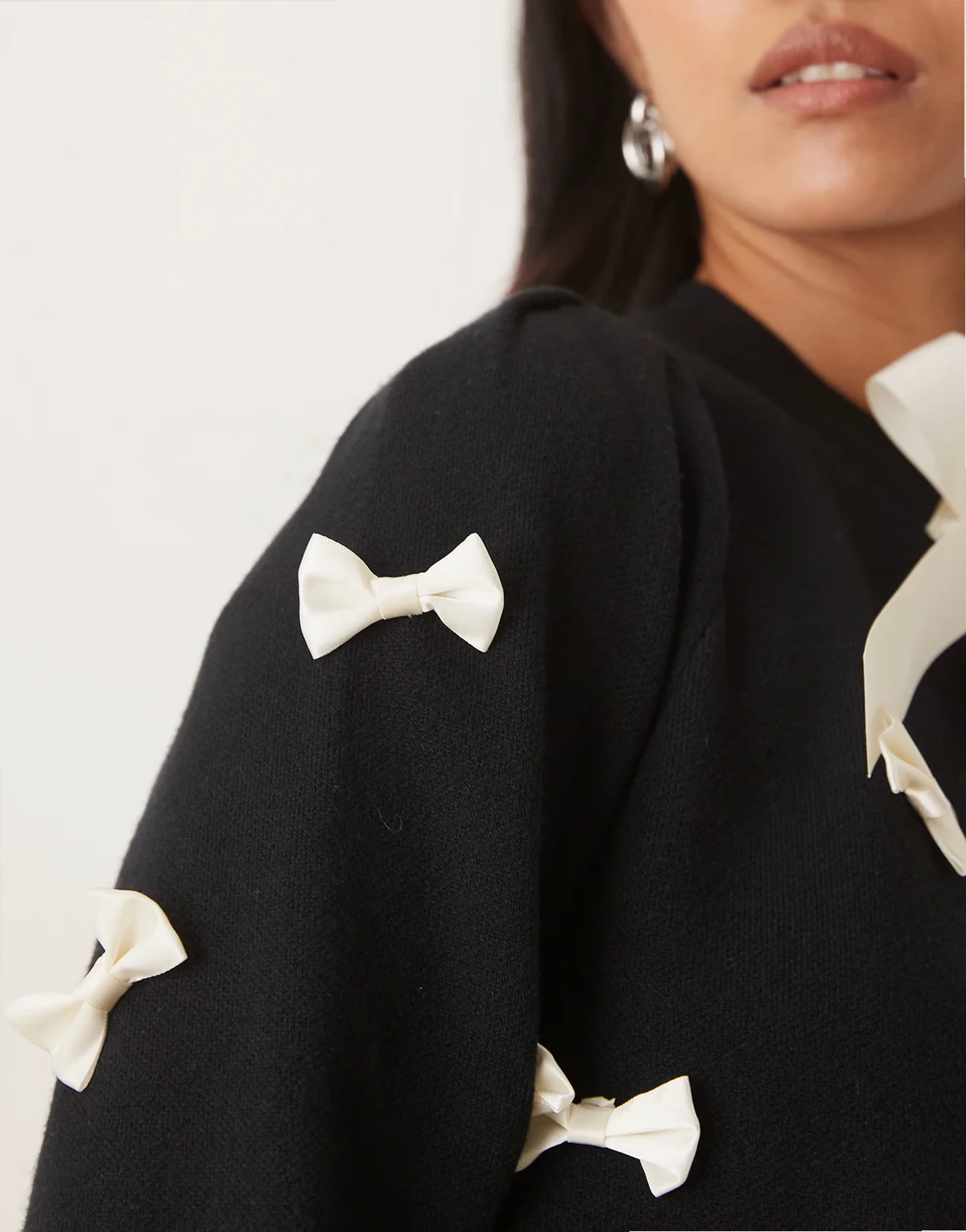 – Strickjacke in Schwaz mit Kontrast-Zierschleifen