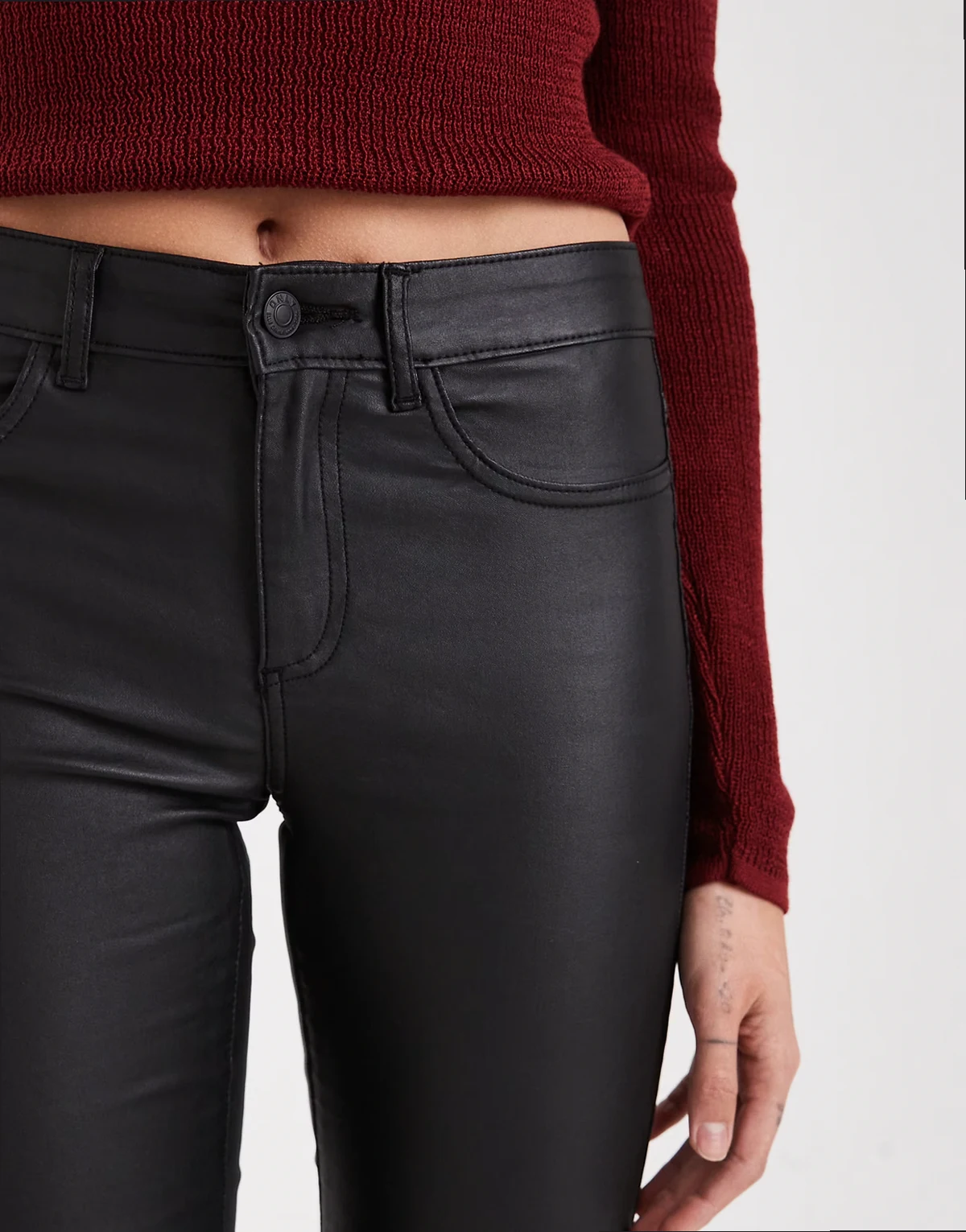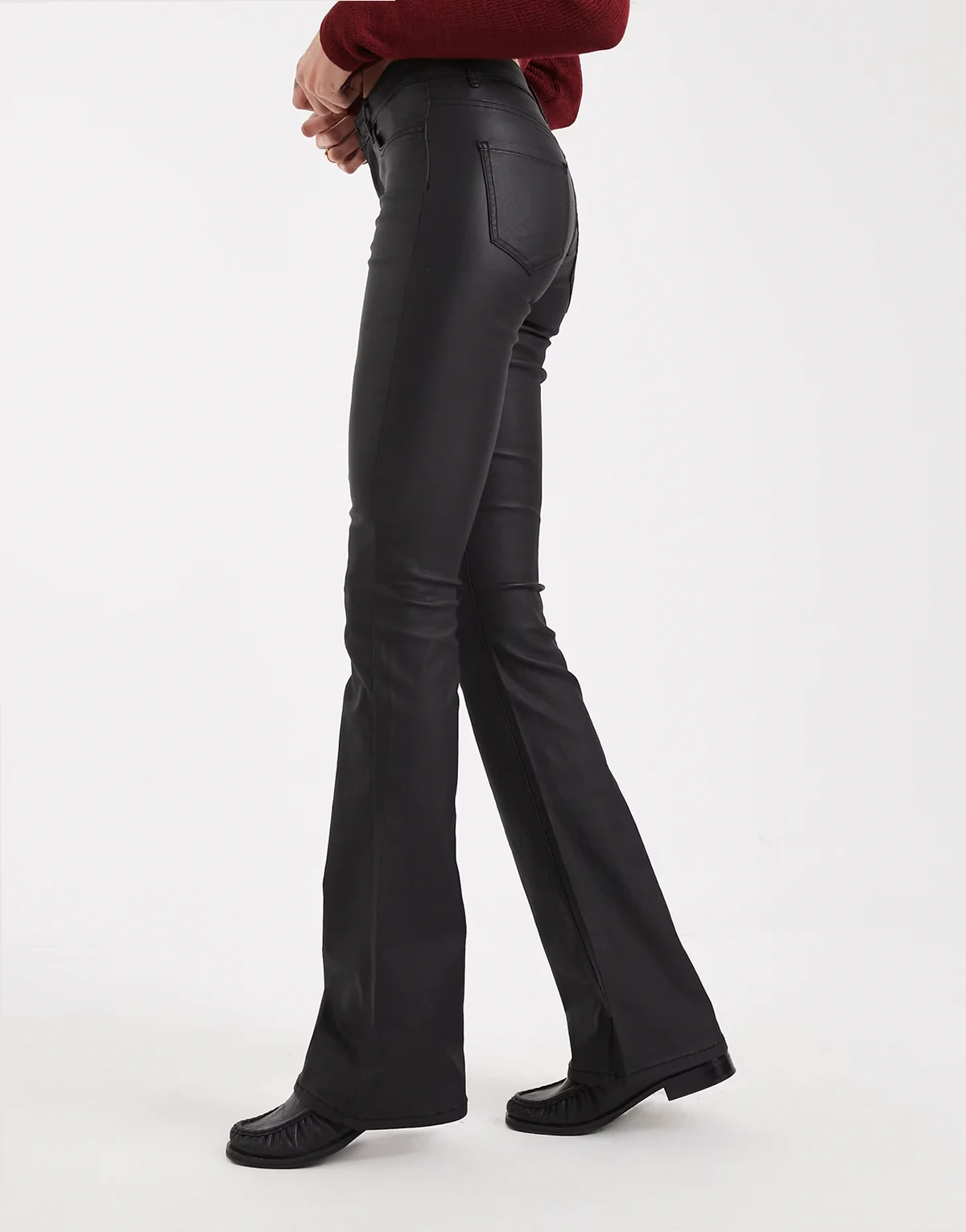 – Beschichtete Schlaghose in Schwarz mit mittelhohem Bund