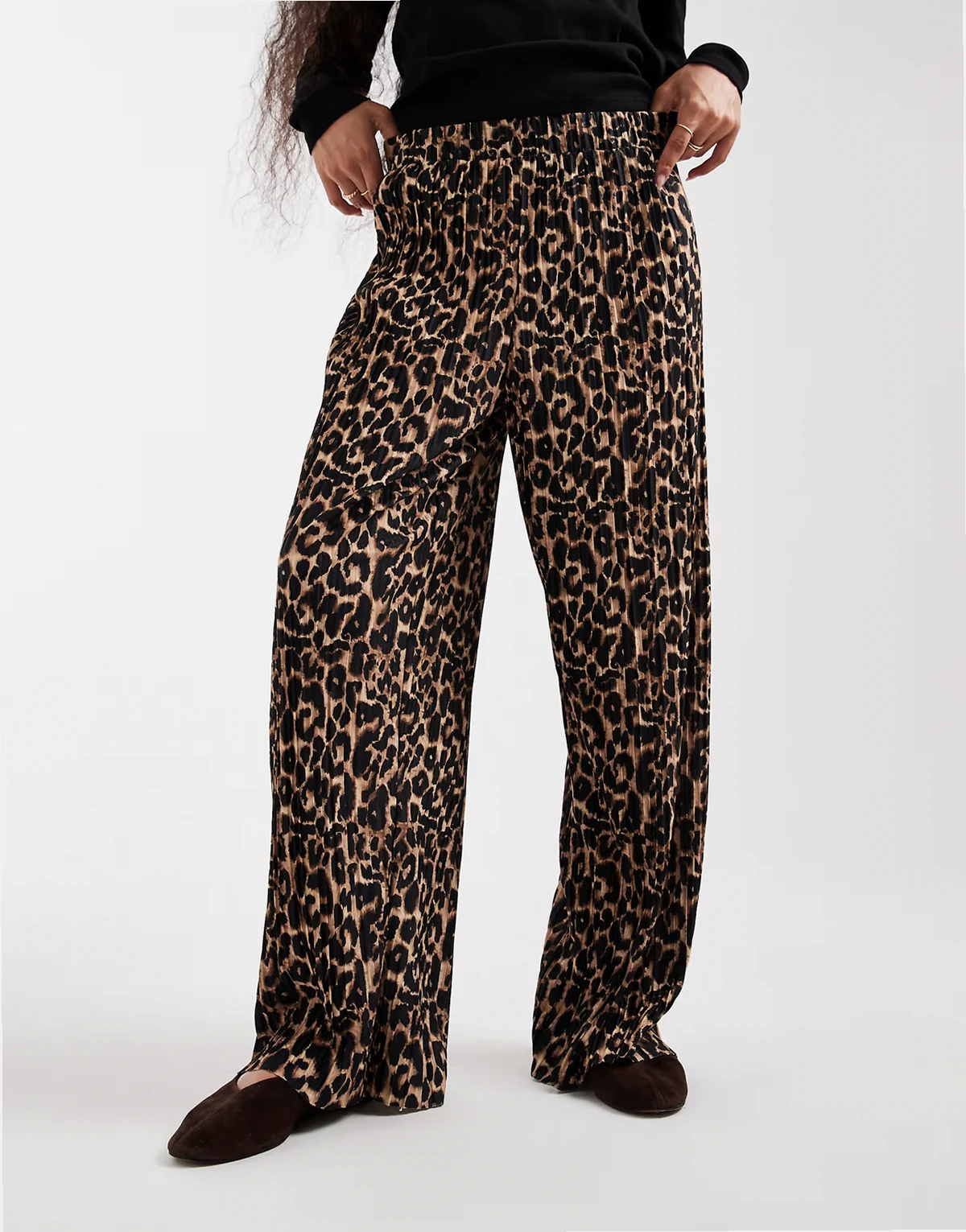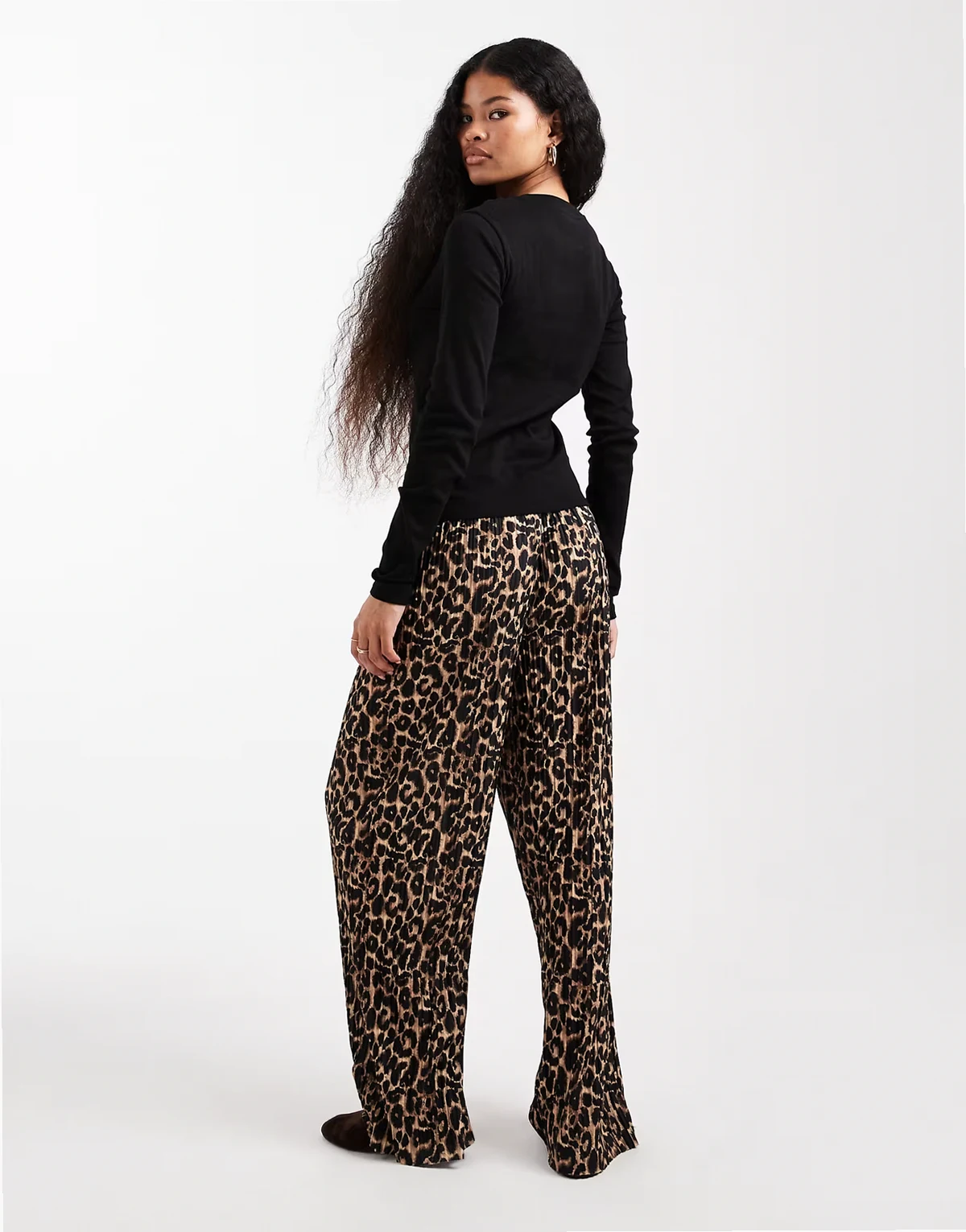 – Lockere, plissierte Schlupfhose mit Leopardenmuster