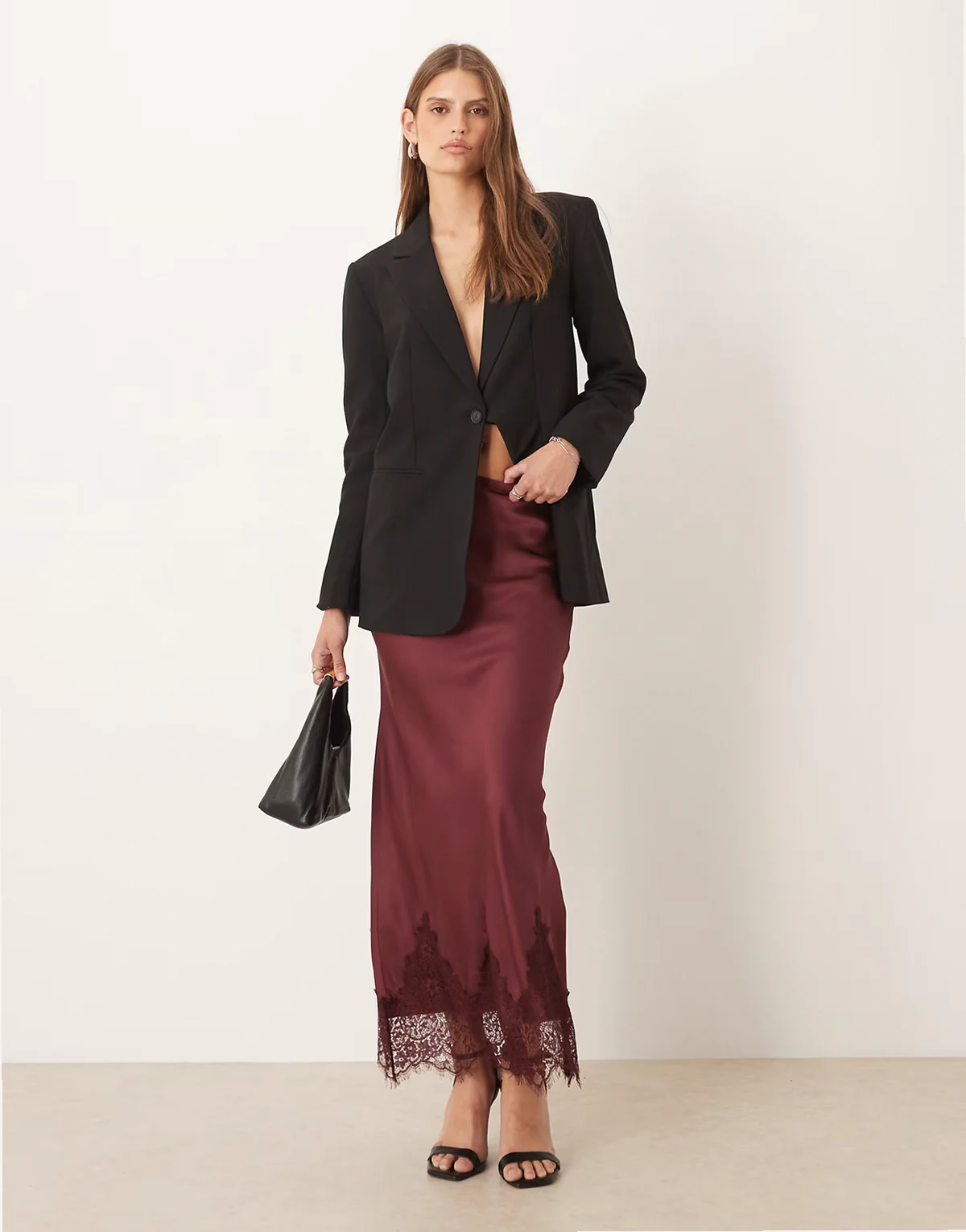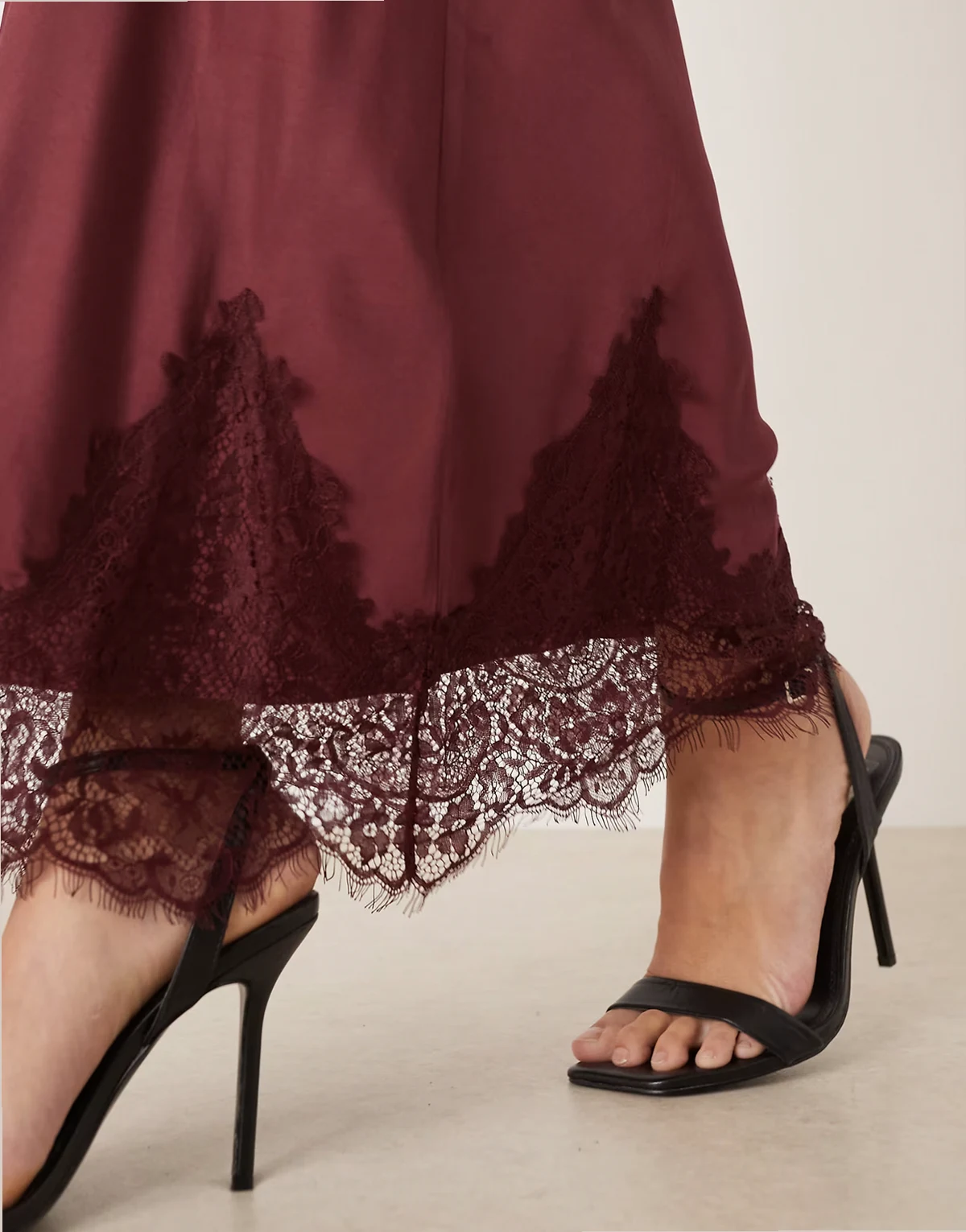 – Maeva – Midaxi-Rock in Weinrot mit Spitzenborte