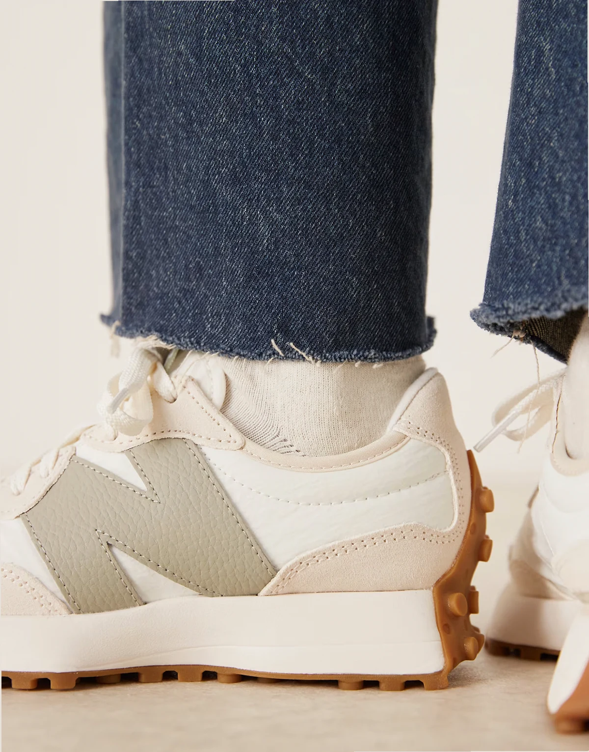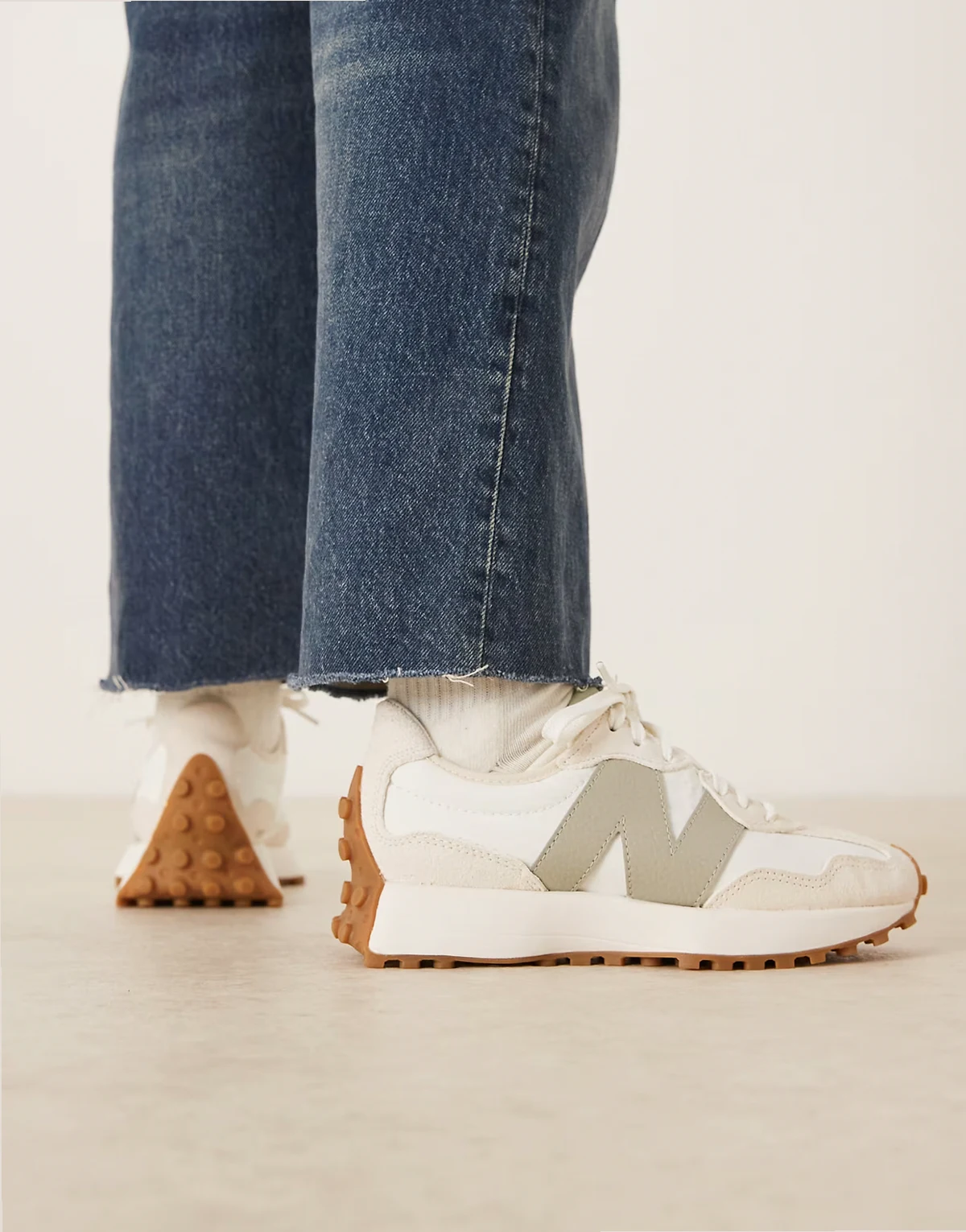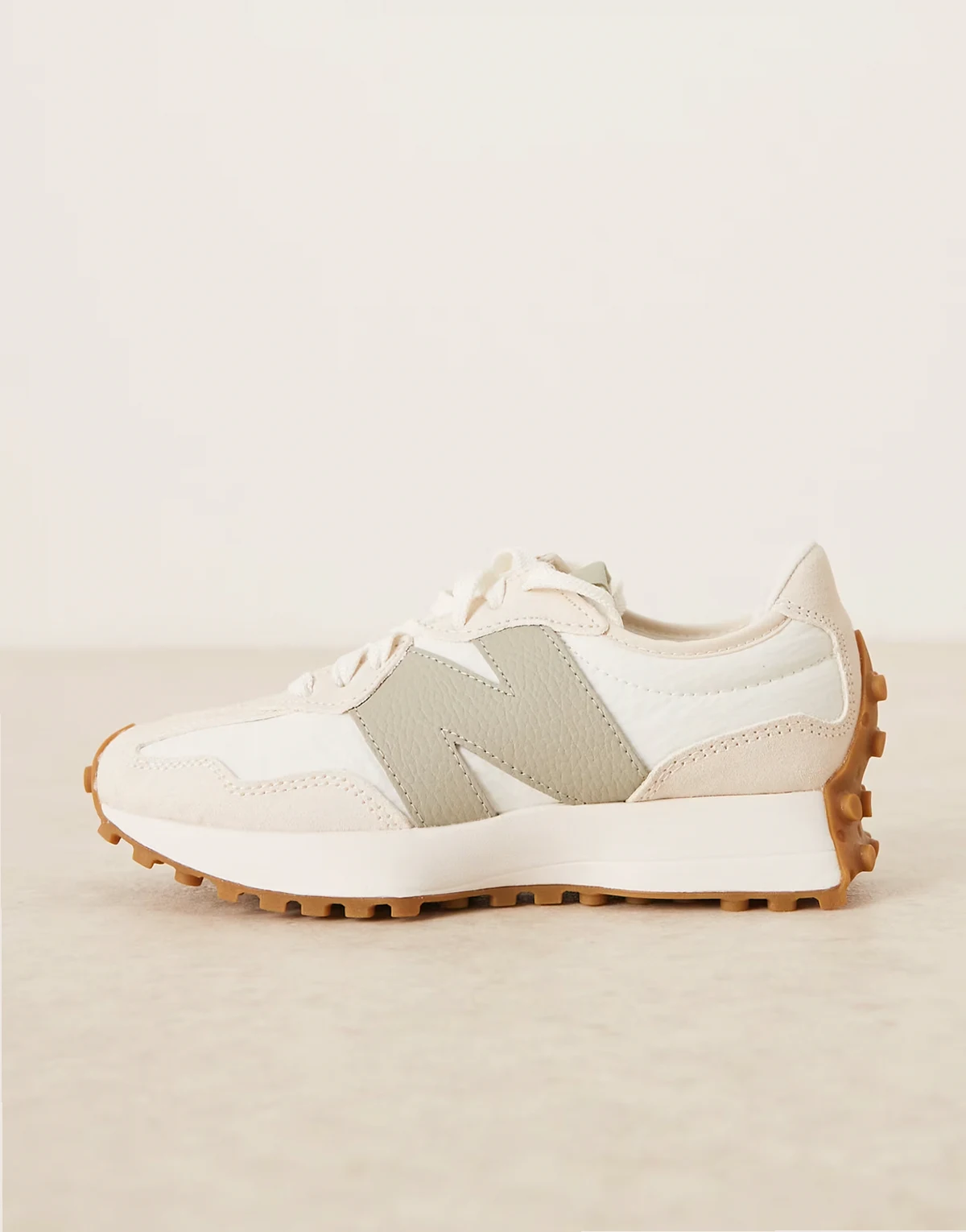 – 327 – Sneaker in Weiß und Beige mit hellgrünen Details