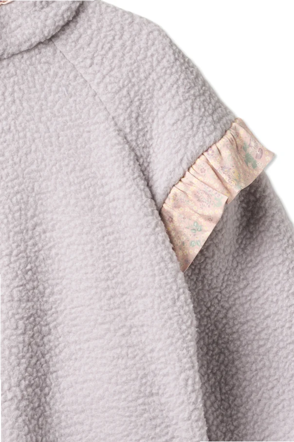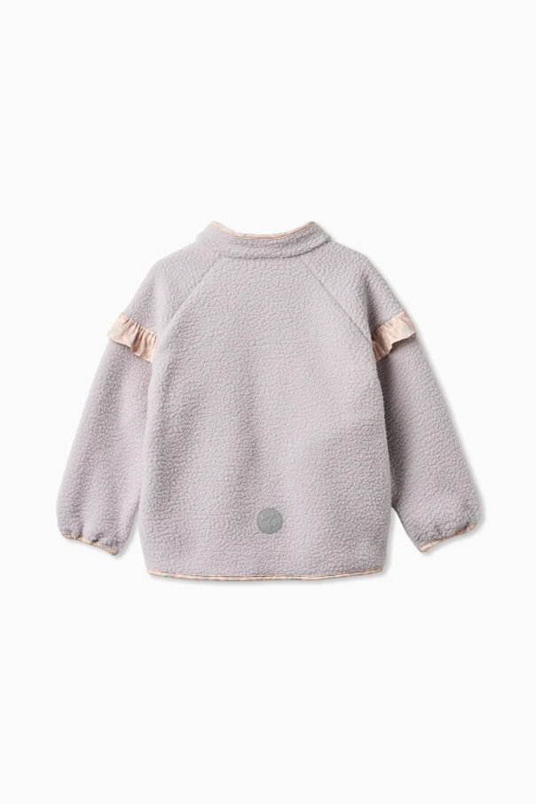Gefertigt wurde sie aus weichem Lammfell-Fleece, der nicht nur wärmt, sondern auch hervorragenden Tragekomfort garantiert. An der Schulterpartie befinden sich kunstvoll geraffte Rüschen aus Stoff mit zartem Blumenmuster , die einen attraktiven Kontrast zum violetten Farbton des Sweatshirts bilden. Sorgfältig gearbeitete Kanten mit farblich abgestimmter Paspelierung unterstreichen die außergewöhnliche Liebe zum Detail.