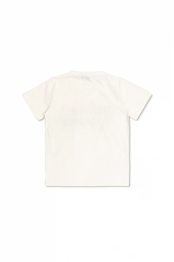 Das cremefarbene T-Shirt mit eingesticktem Markenlogo von Golden Goose Kids verkörpert zeitgenössische Eleganz in einer kindgerechten Ausführung. Die klassische Form des Kurzarmshirts mit rundem Halsausschnitt bietet dezente Bewegungsfreiheit und unvergleichlichen Tragekomfort. Der sorgfältig ausgewählte, weiche Premiumstoff schmiegt sich sanft an die Haut, während das exzellente, gleichmäßige Gewebe die Liebe zum Detail untermauert.
