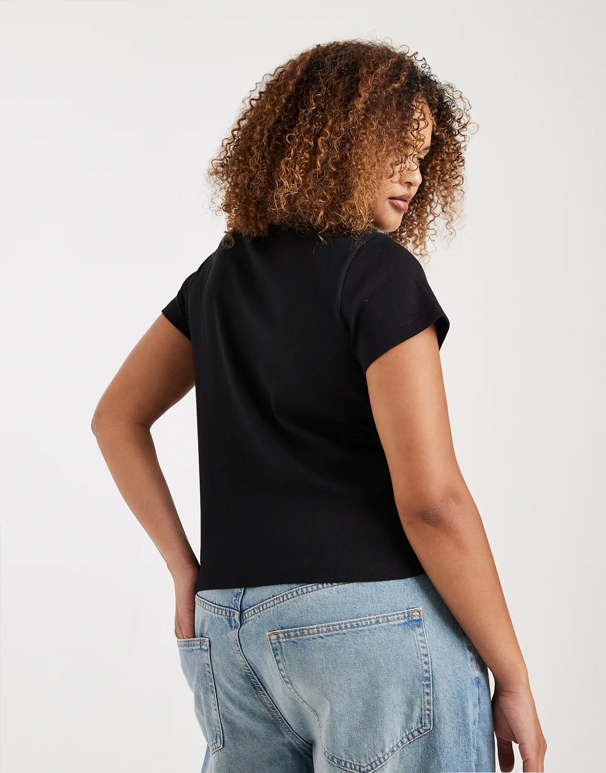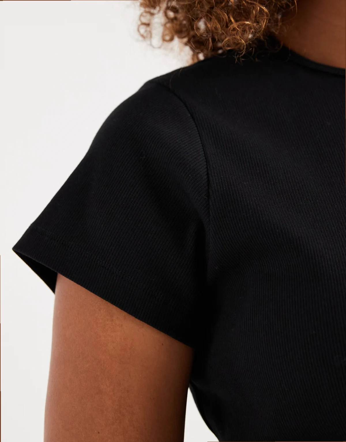 – Geripptes T-Shirt in Schwarz mit Rundhalsausschnitt