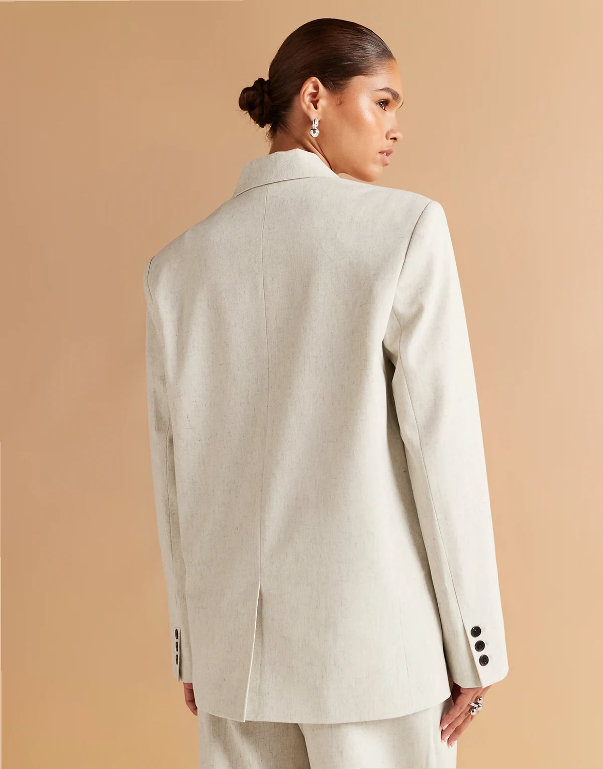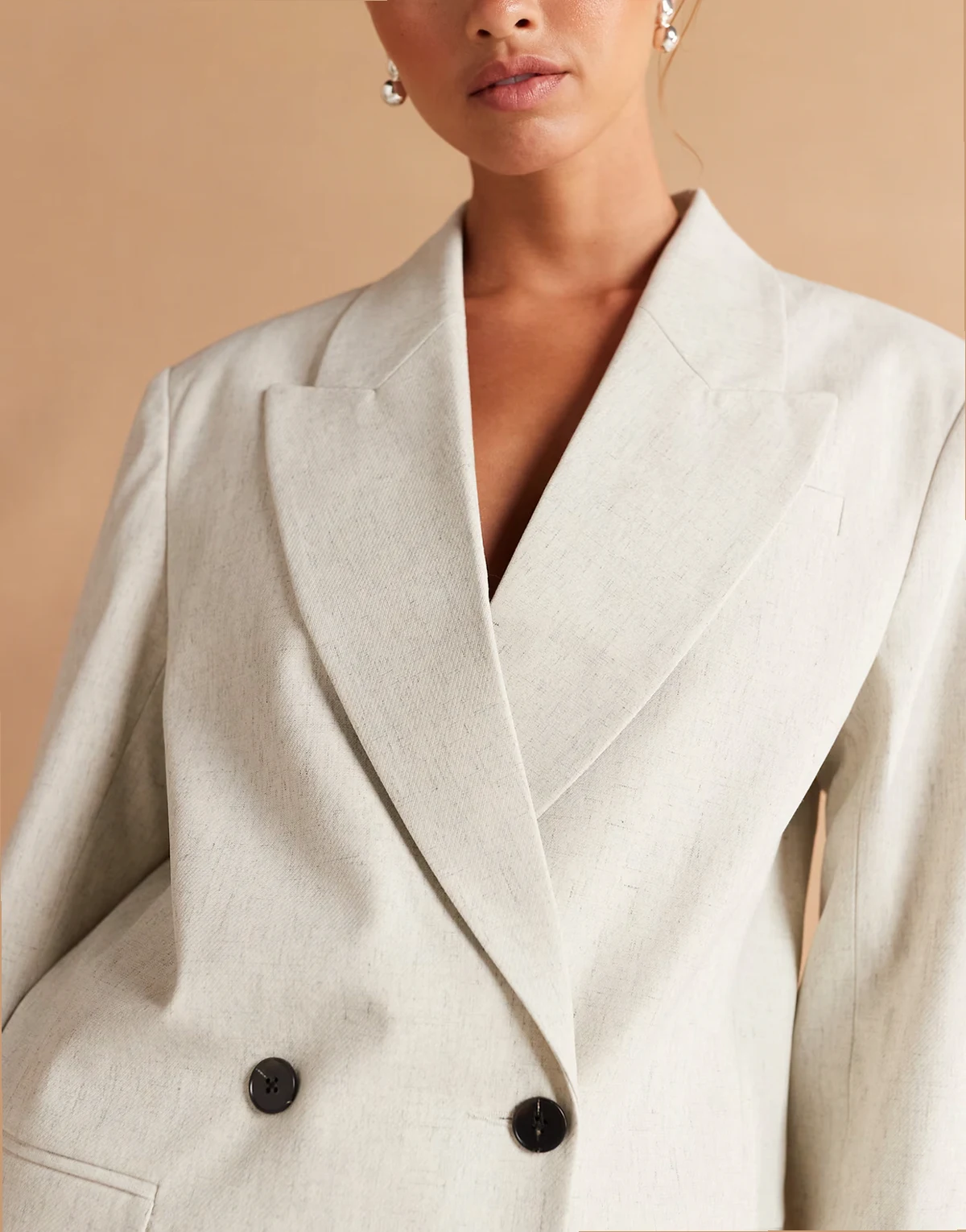– Zweireihiger, strukturierter Oversize-Blazer in Wollweiß