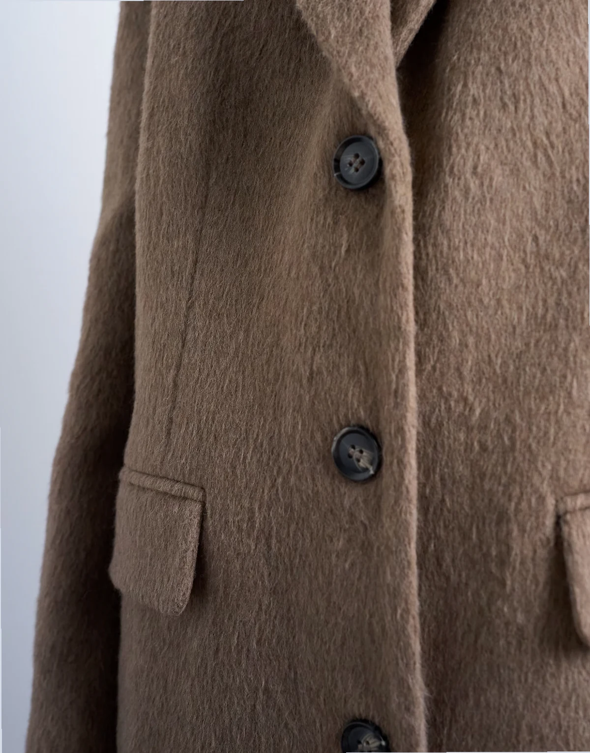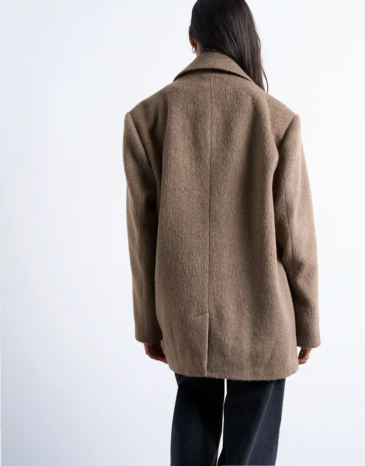 Dieser Blazer ist aus einem gebürsteten Webmaterial gefertigt. Er verfügt über ein eingekerbtes Revers, einen Drei-Knopf-Verschluss, Brust- und Seitentaschen und hat eine lockere Passform.
