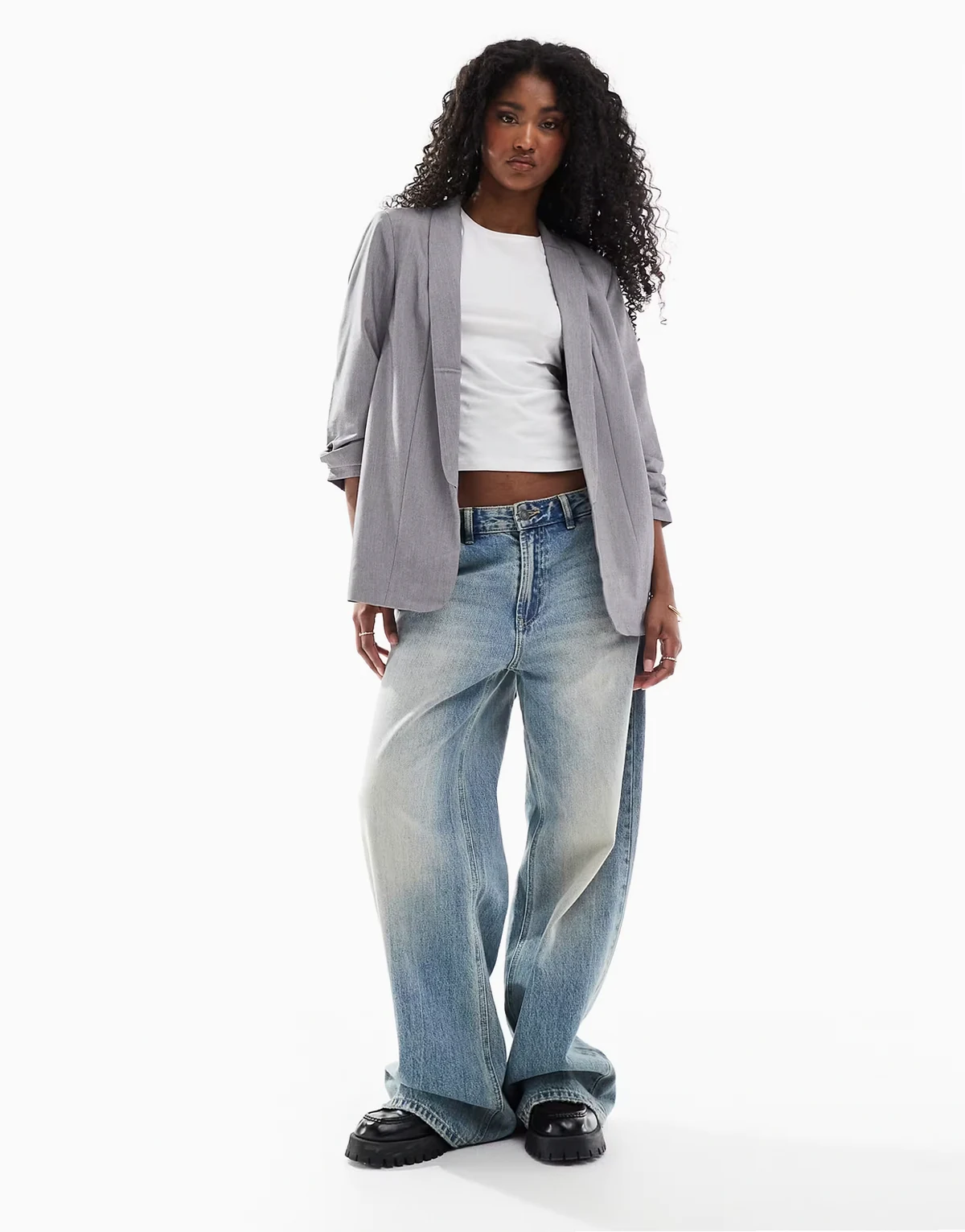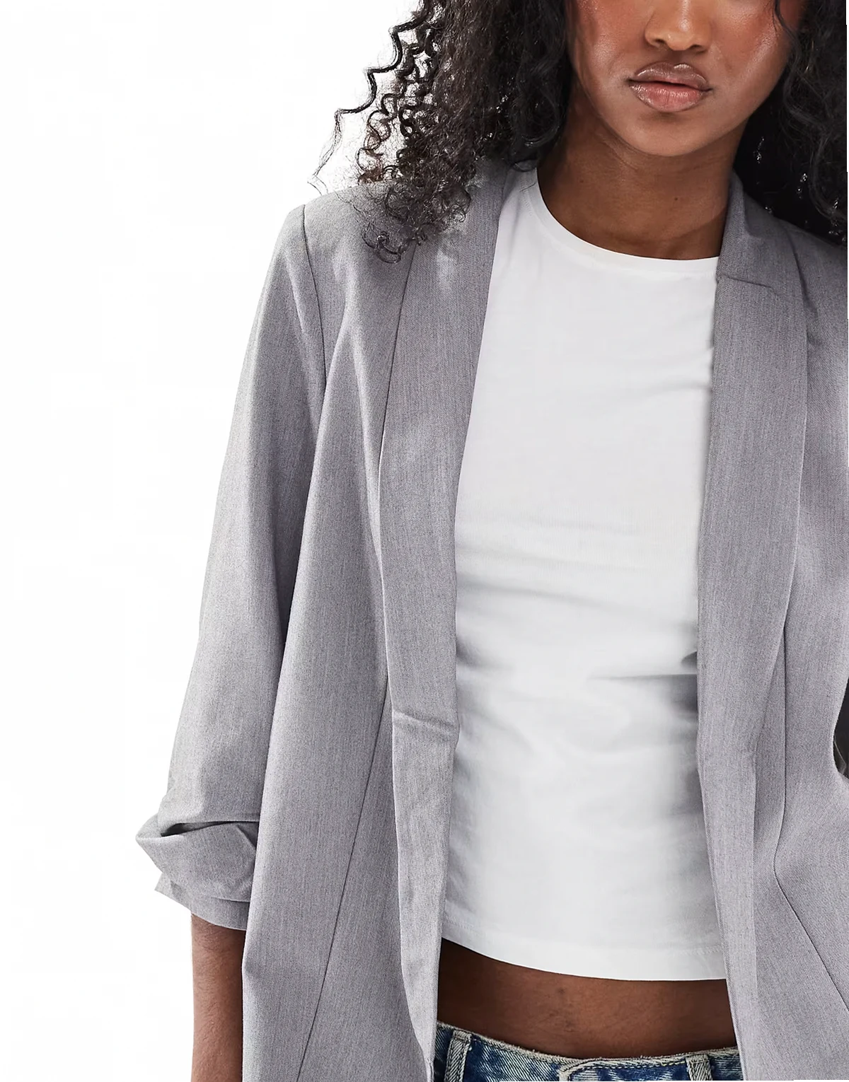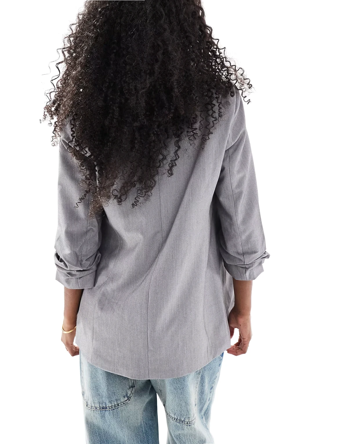 – Blazer in Hellgrau meliert mit gerafften Ärmeln