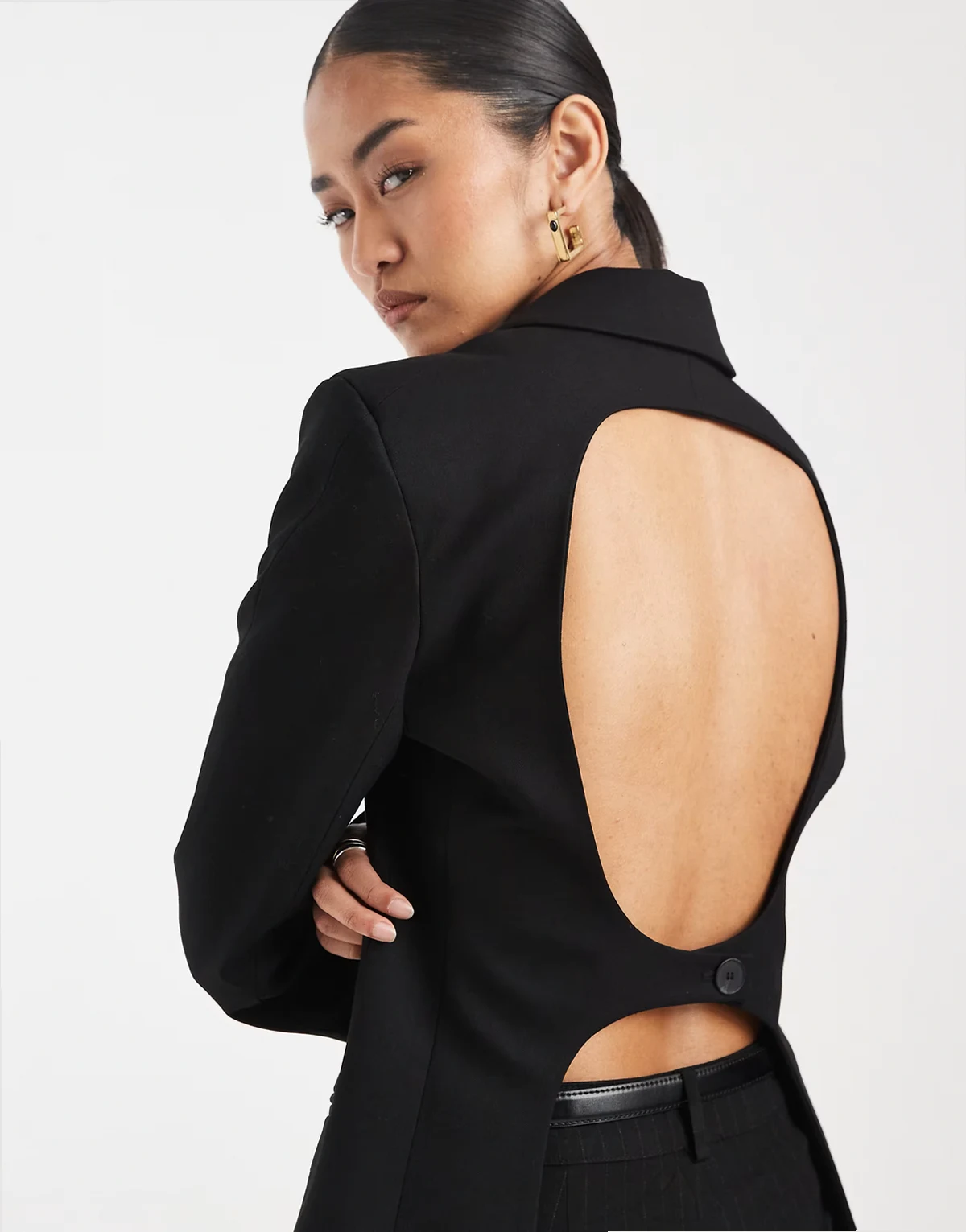 – Taillierter Blazer in Schwarz mit Rückenausschnitt
