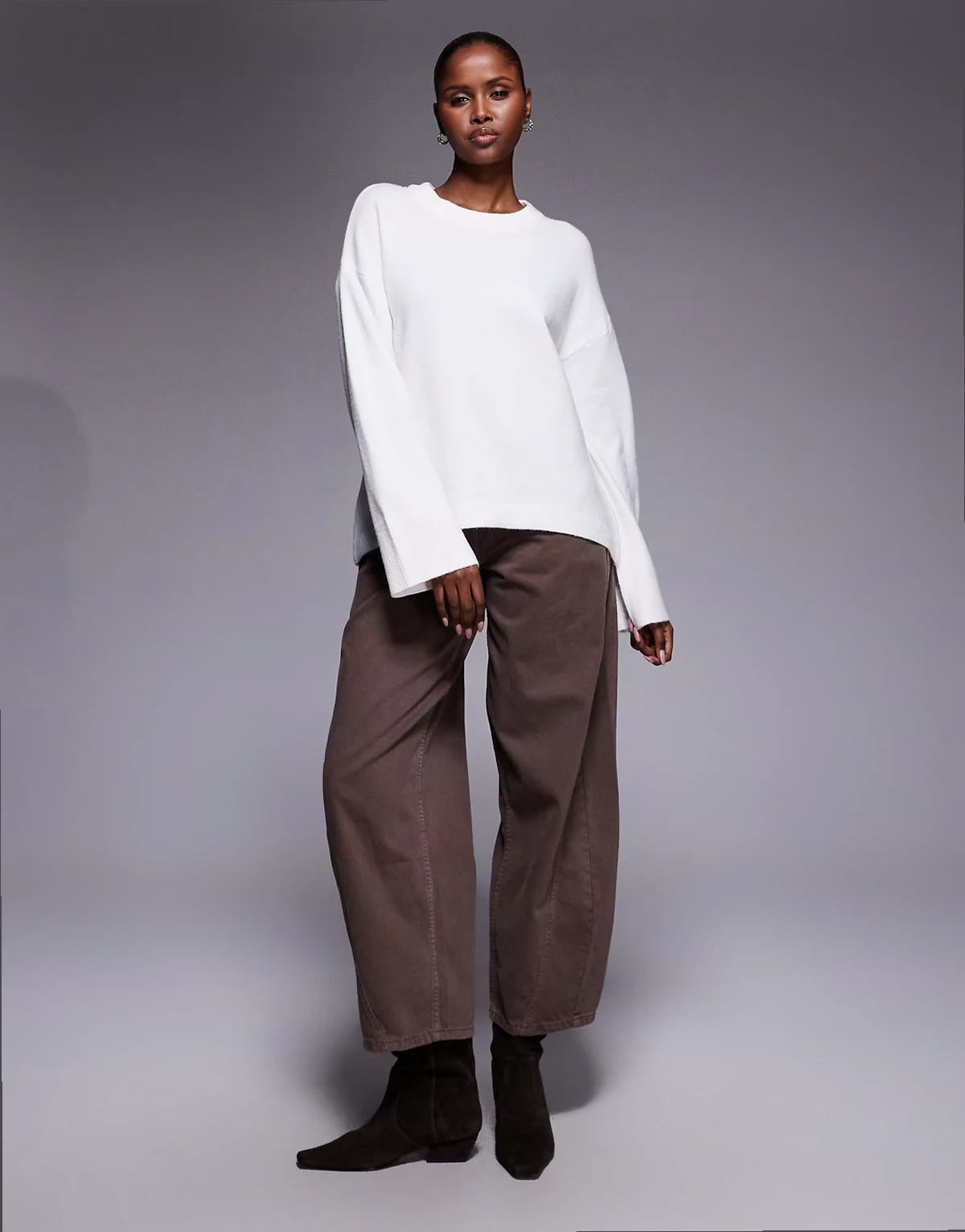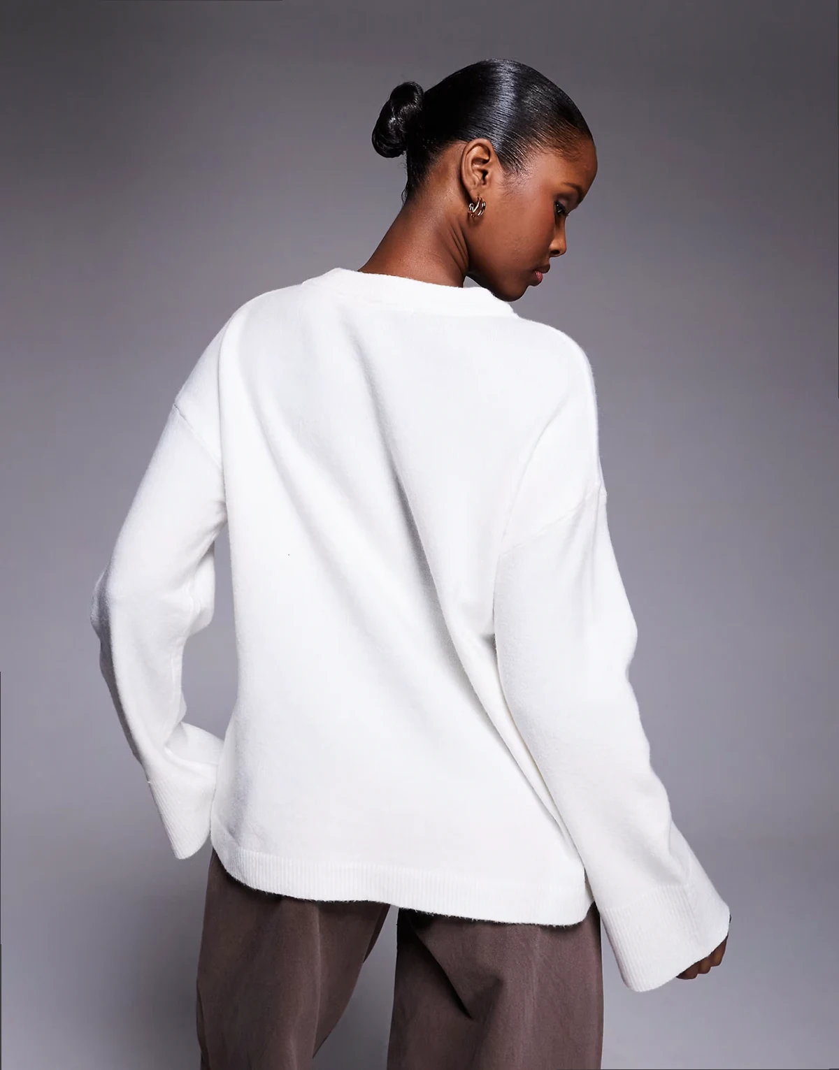 – Strickpullover in Cremeweiß mit Rundhalsausschnitt