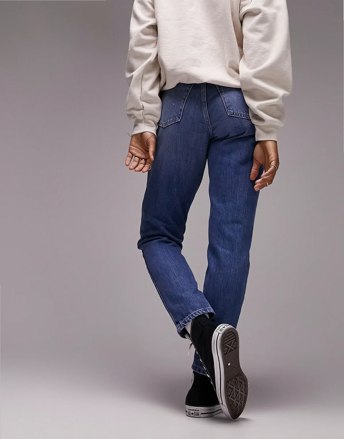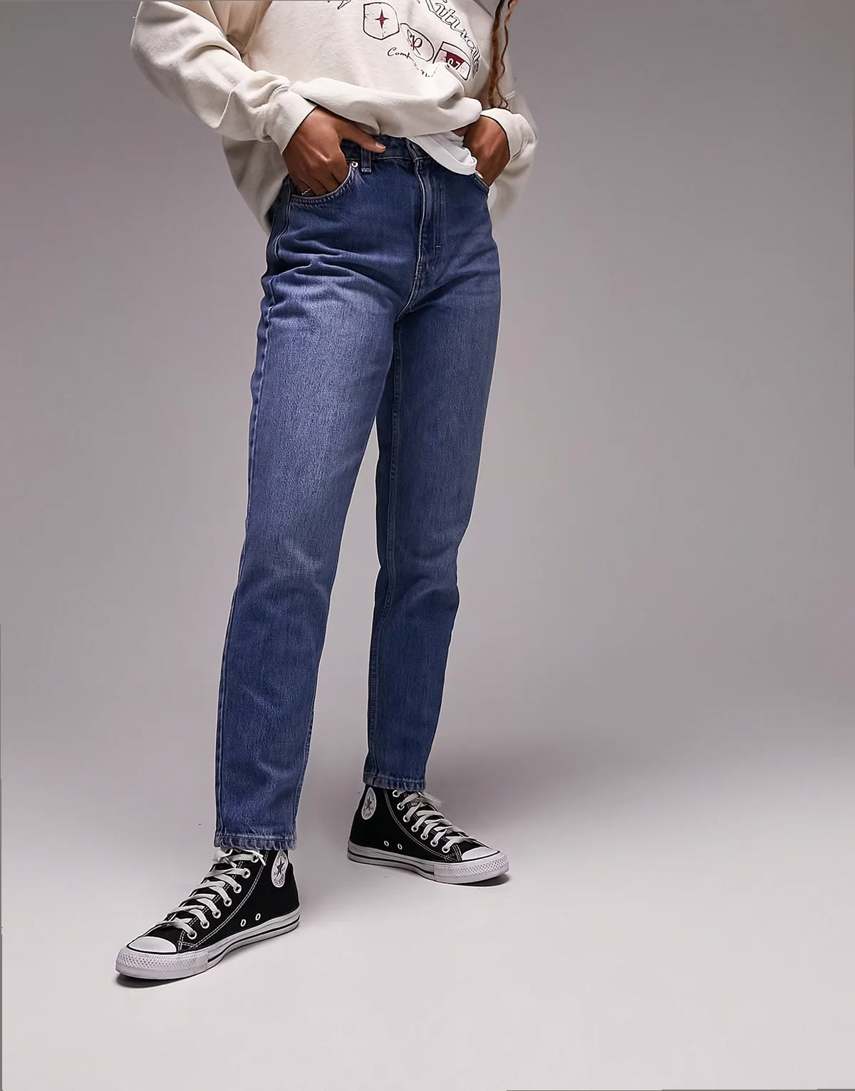 – Original – Mom-Jeans in Mittelblau mit hohem Bund