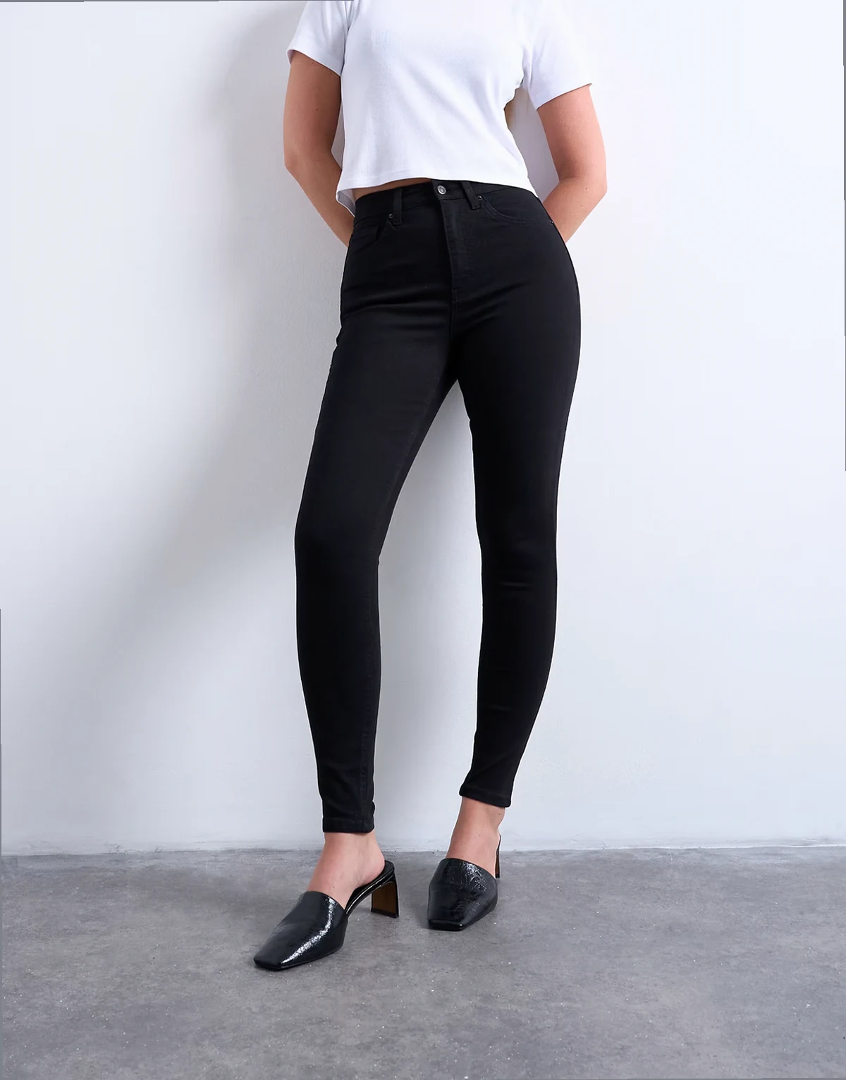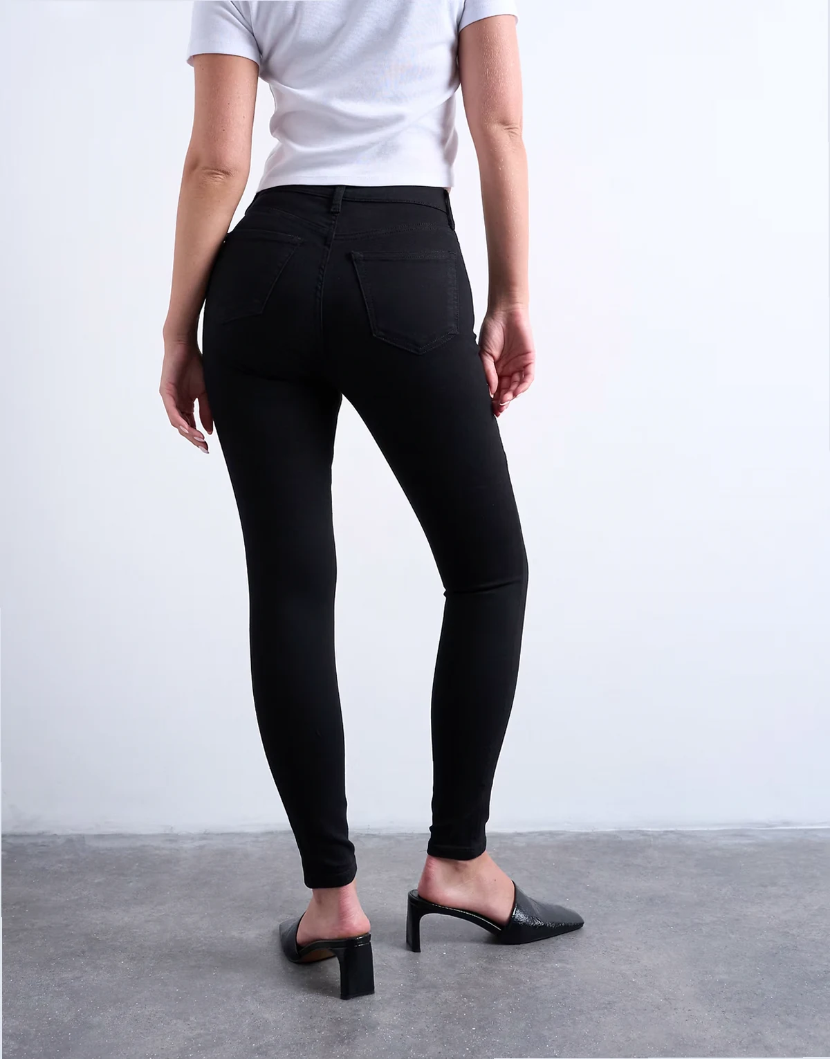 Diese Jamie-Jeans überzeugt mit hohem Bund, bequemer Passform an der Hüfte und schmal zulaufendem Bein bis zum Knöchel. Dieses Modell aus Power-Stretch-Denim in schwarzer Waschung ist mit Gürtelschlaufen, einem Reißverschluss und fünf funktionalen Taschen ausgestattet.
