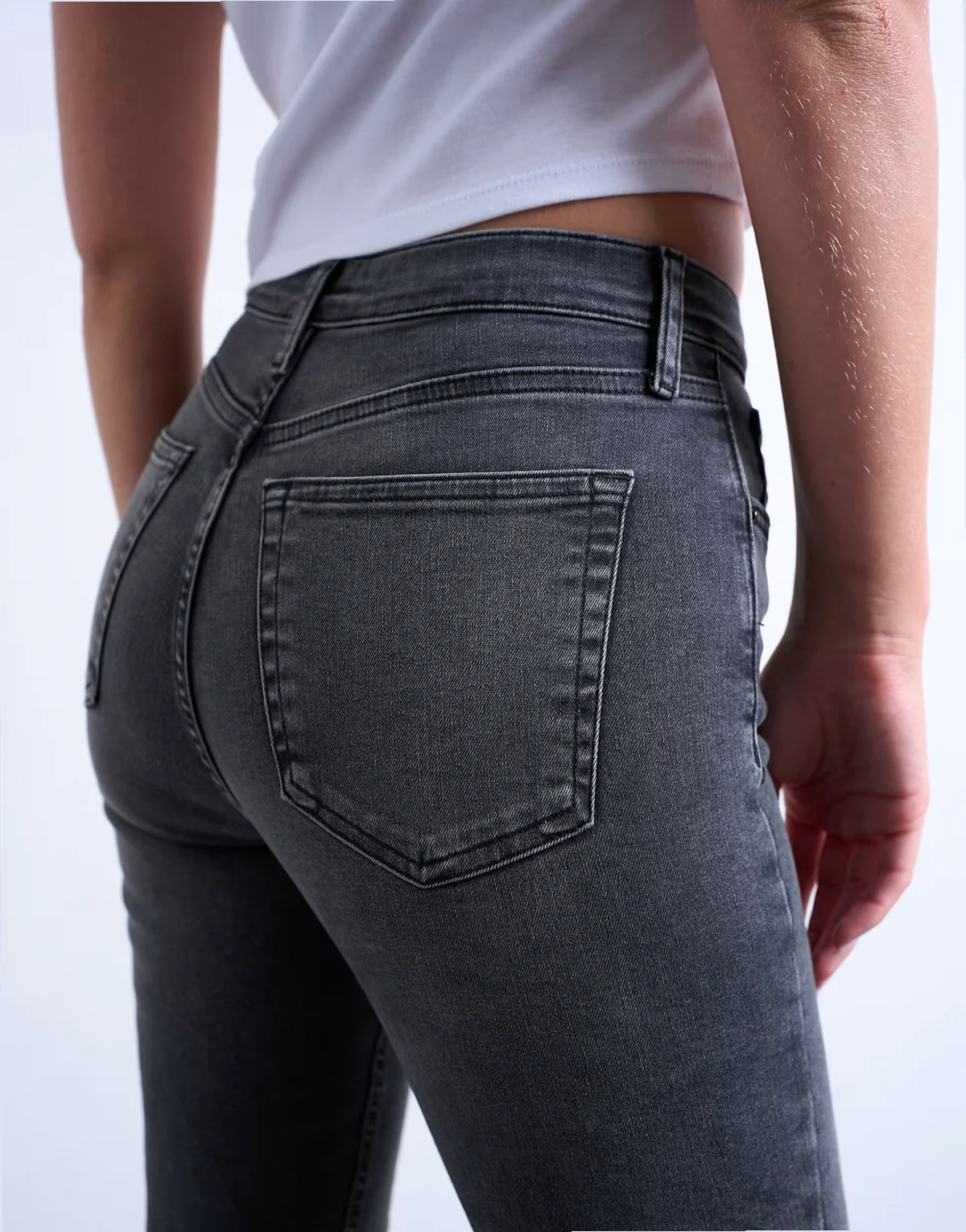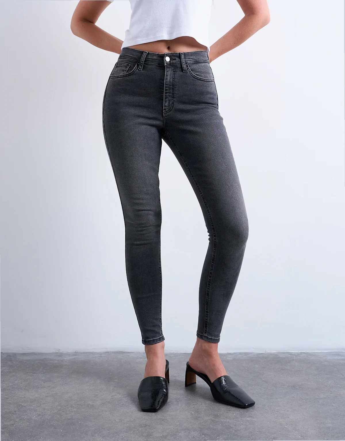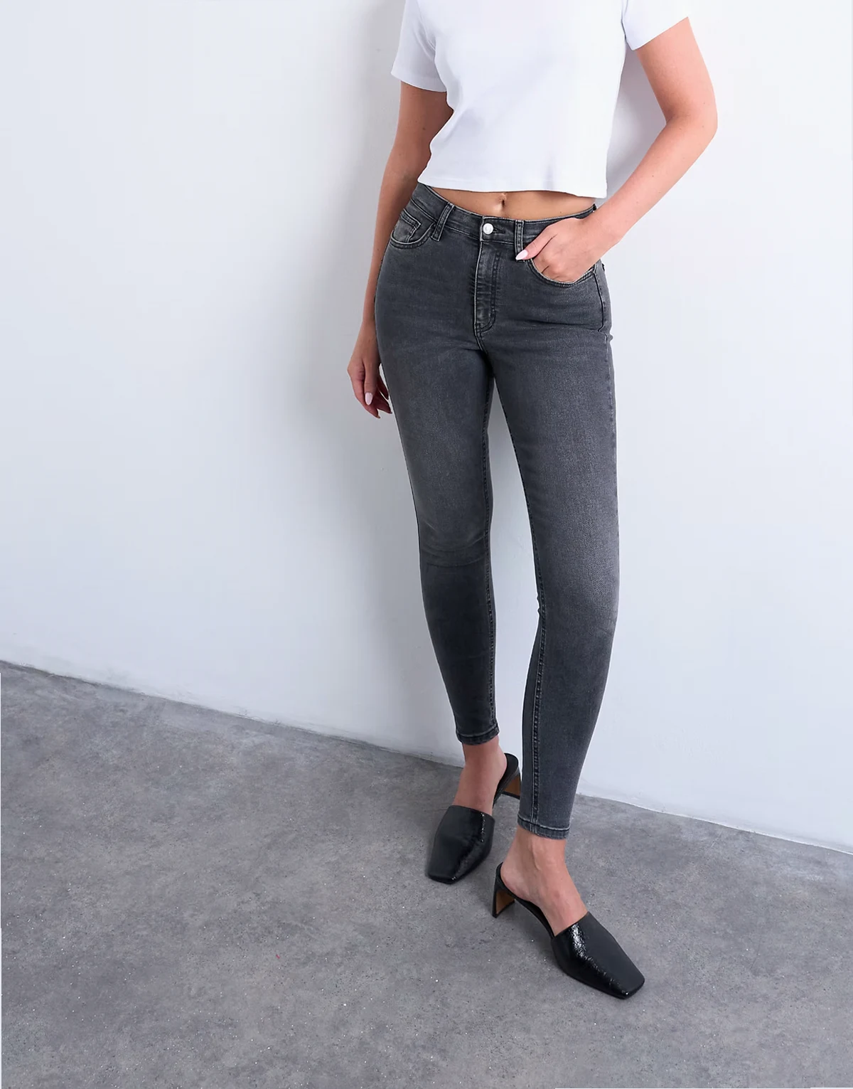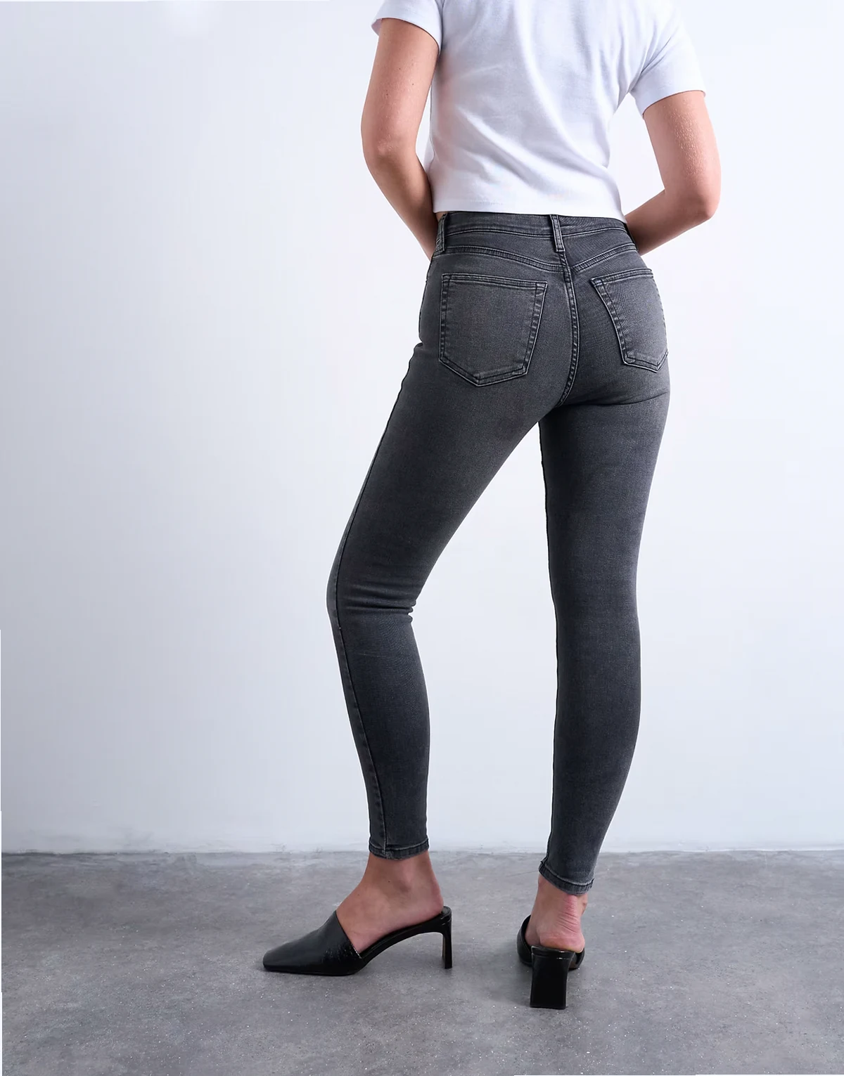 Diese Jamie Jeans bieten einen hohen Bund, eine bequeme Passform an der Hüfte und einen engen Schnitt am Bein, das bis zum Knöchel reicht. Gürtelschlaufen, ein Hosenschlitz mit Reißverschluss und fünf funktionale Taschen machen dieses Modell aus Denim mit Power-Stretch-Technologie in einer schwarzen Waschung im Used Look aus.