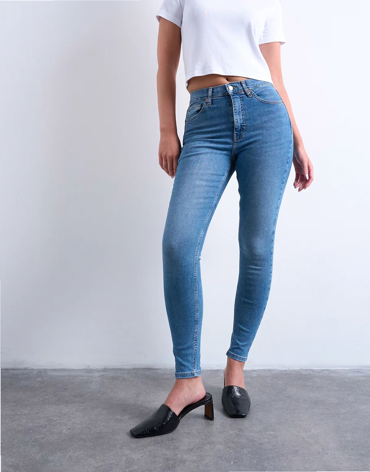 Diese Jamie-Jeans überzeugt mit hohem Bund, bequemer Passform an der Hüfte und schmal zulaufendem Bein bis zum Knöchel. Dieses Modell aus Power-Stretch-Denim in mittelblauer Waschung ist mit Gürtelschlaufen, einem Reißverschluss und fünf funktionalen Taschen ausgestattet.