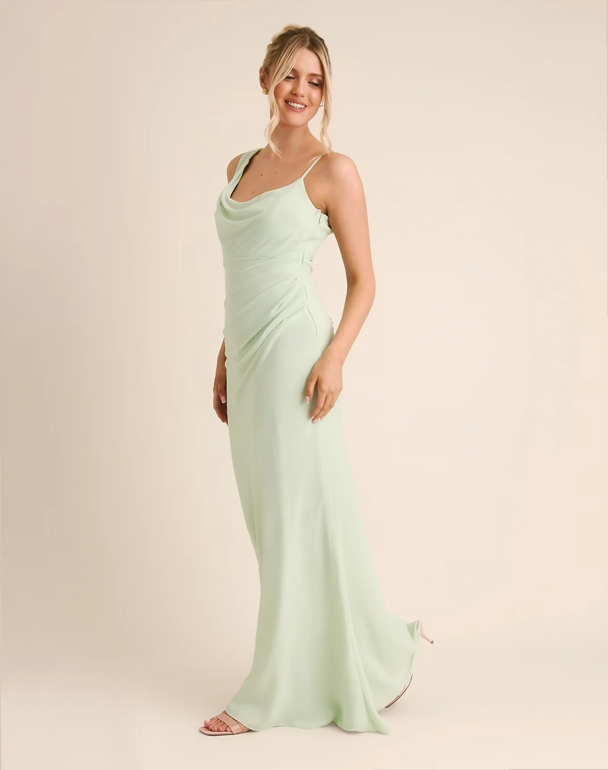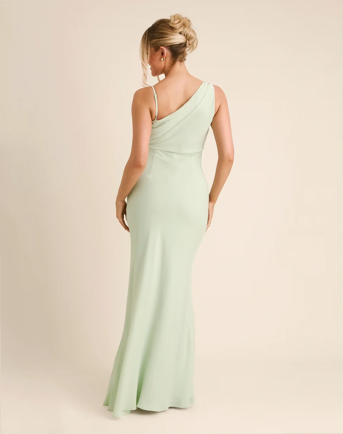 – Bridesmaid – Crepe-Maxikleid in Minzgrün mit asymmetrischem Wasserfallausschnitt