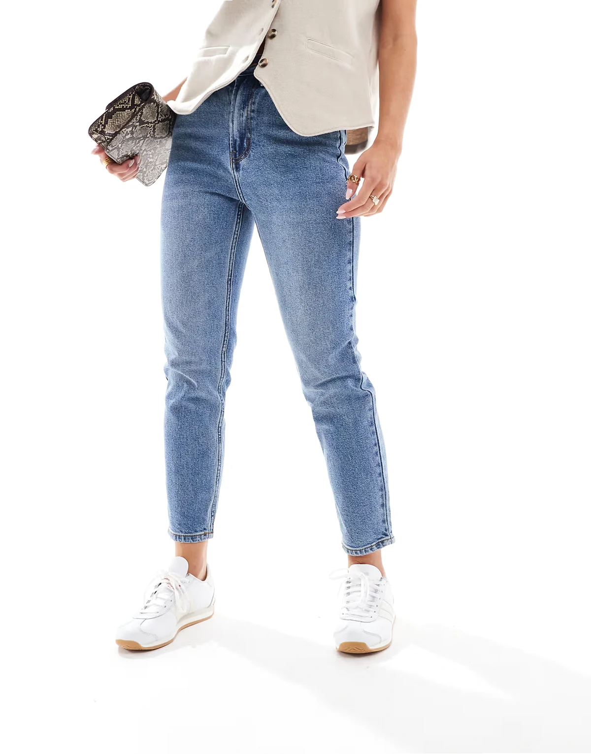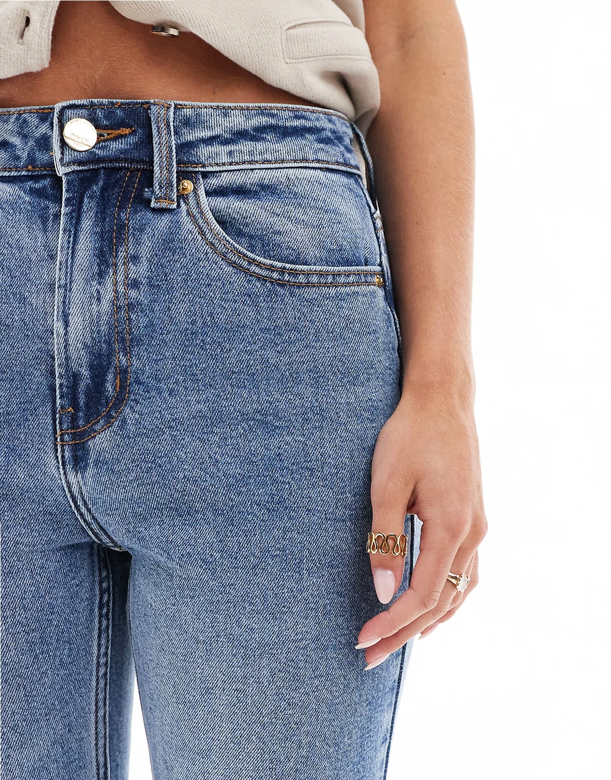 – Emily – Gerade geschnittene Jeans in Mittelblau mit hohem Bund