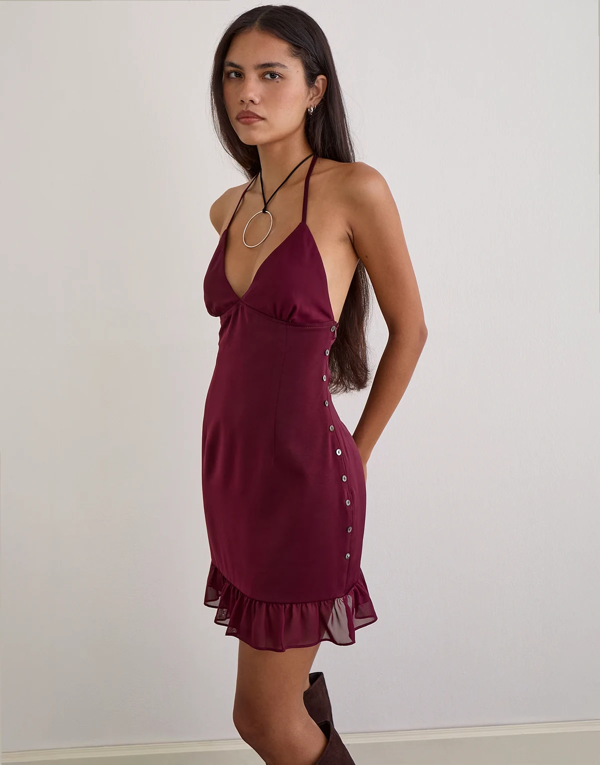 – Rosali – Chiffon-Kleid in Burgunderrot mit Neckholder