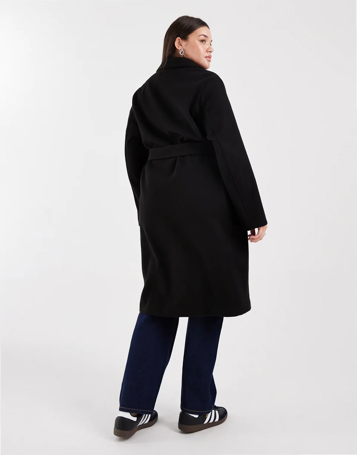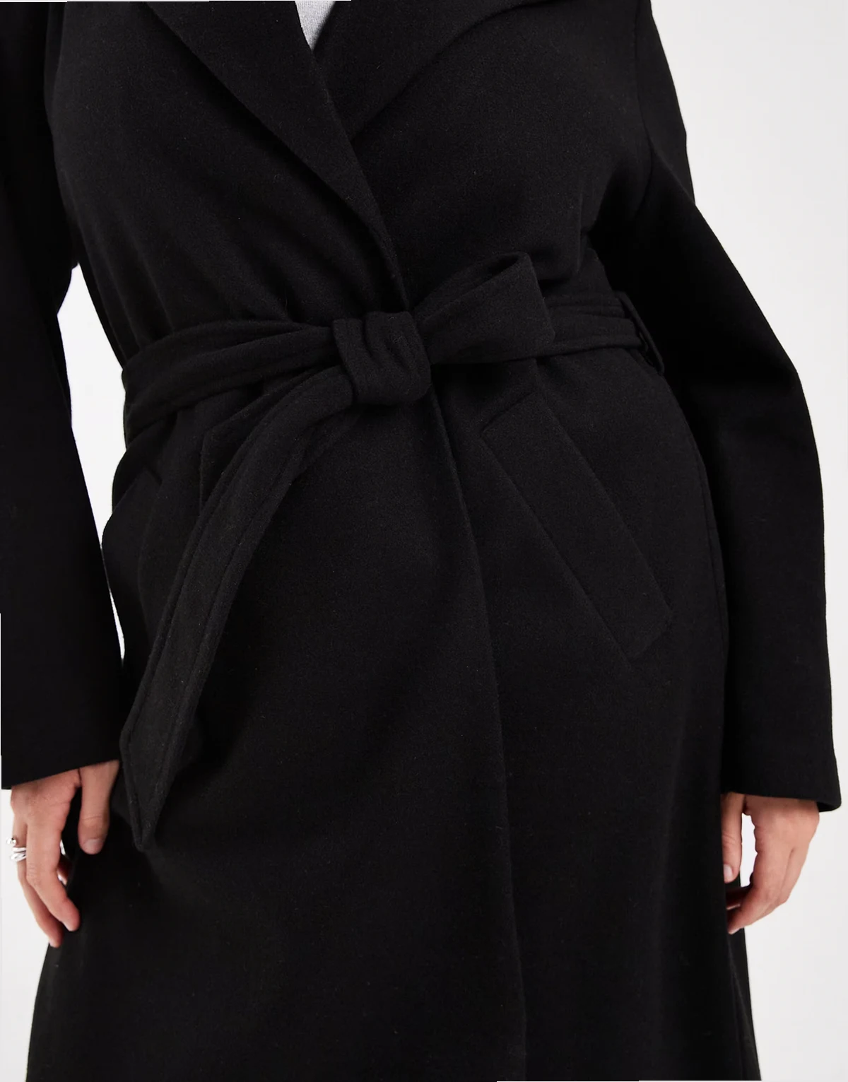 – Eleganter Midi-Mantel in Schwarz mit Bindegürtel