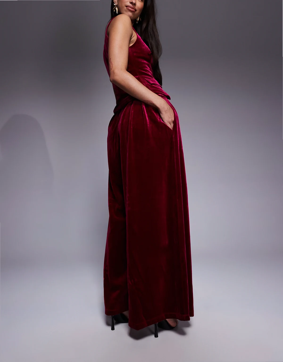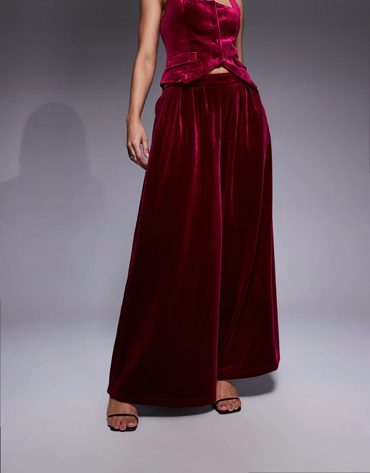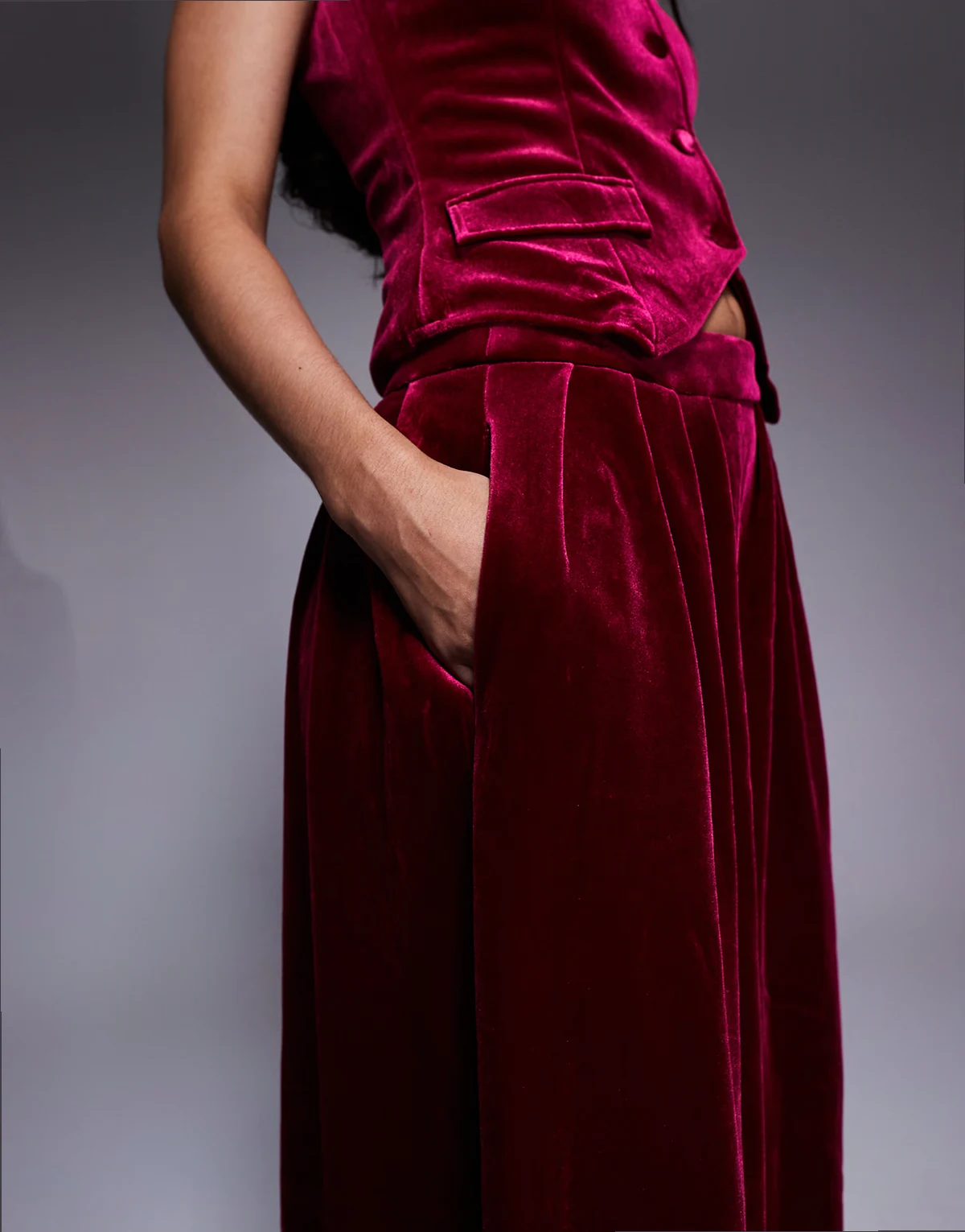 – Plissierte Hose aus Samt in Rosa, Kombiteil