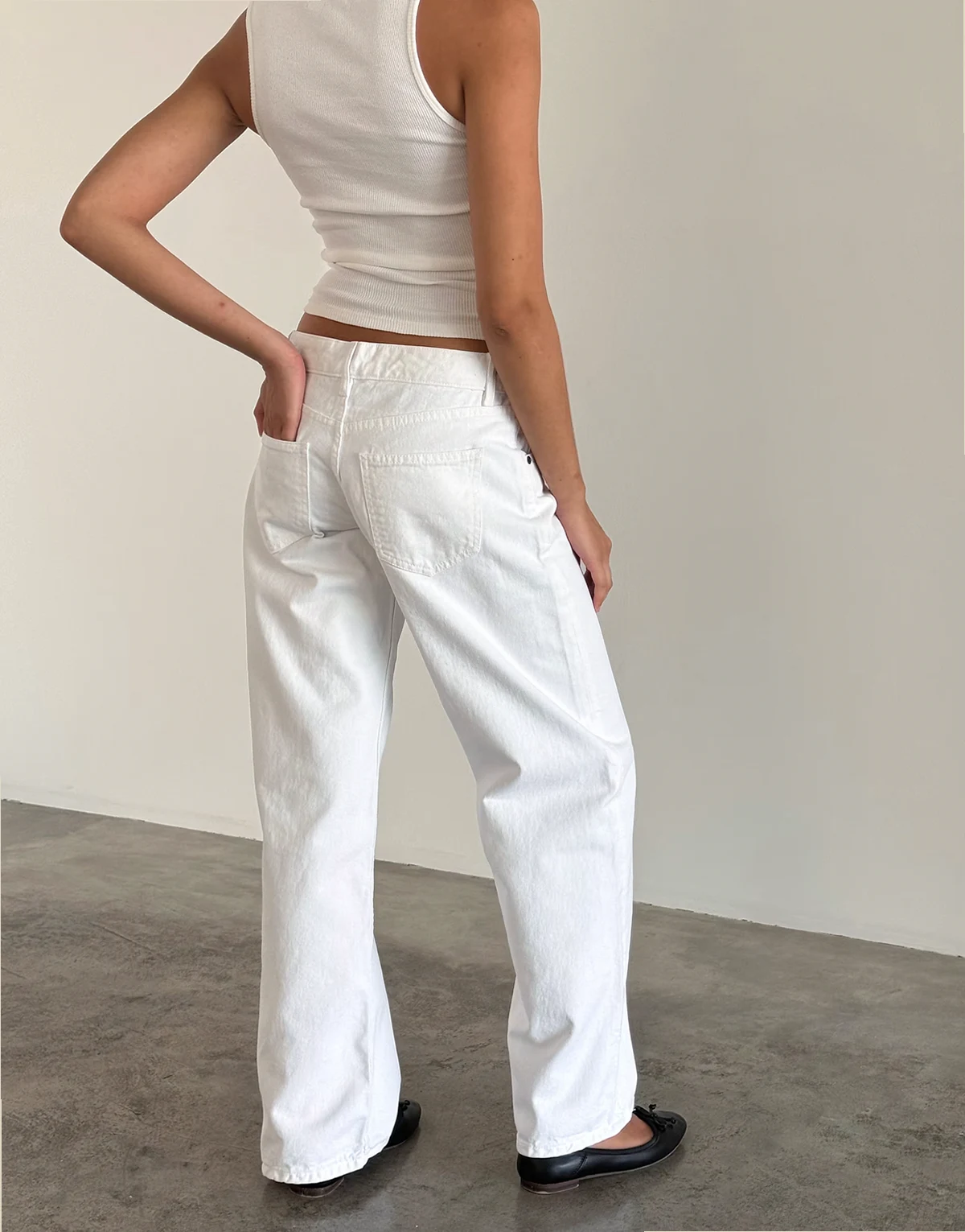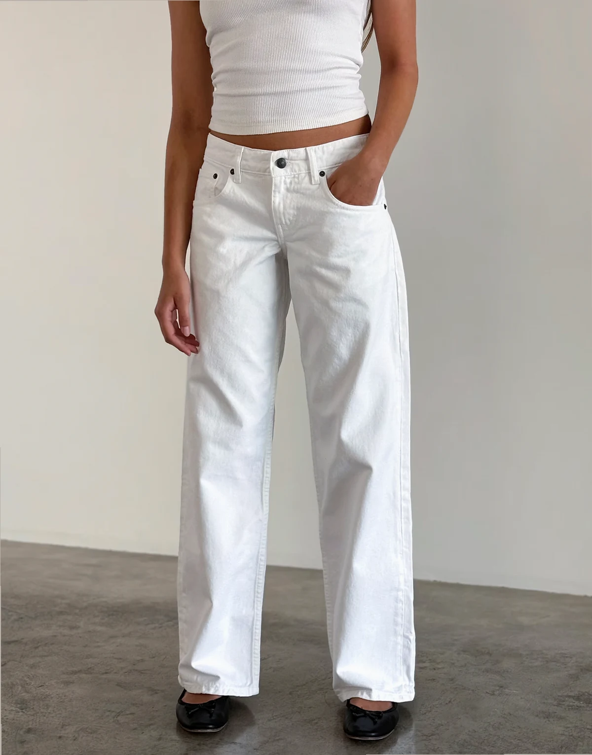 – Parallel – Jeans in Echtweiß mit niedrigem Bund